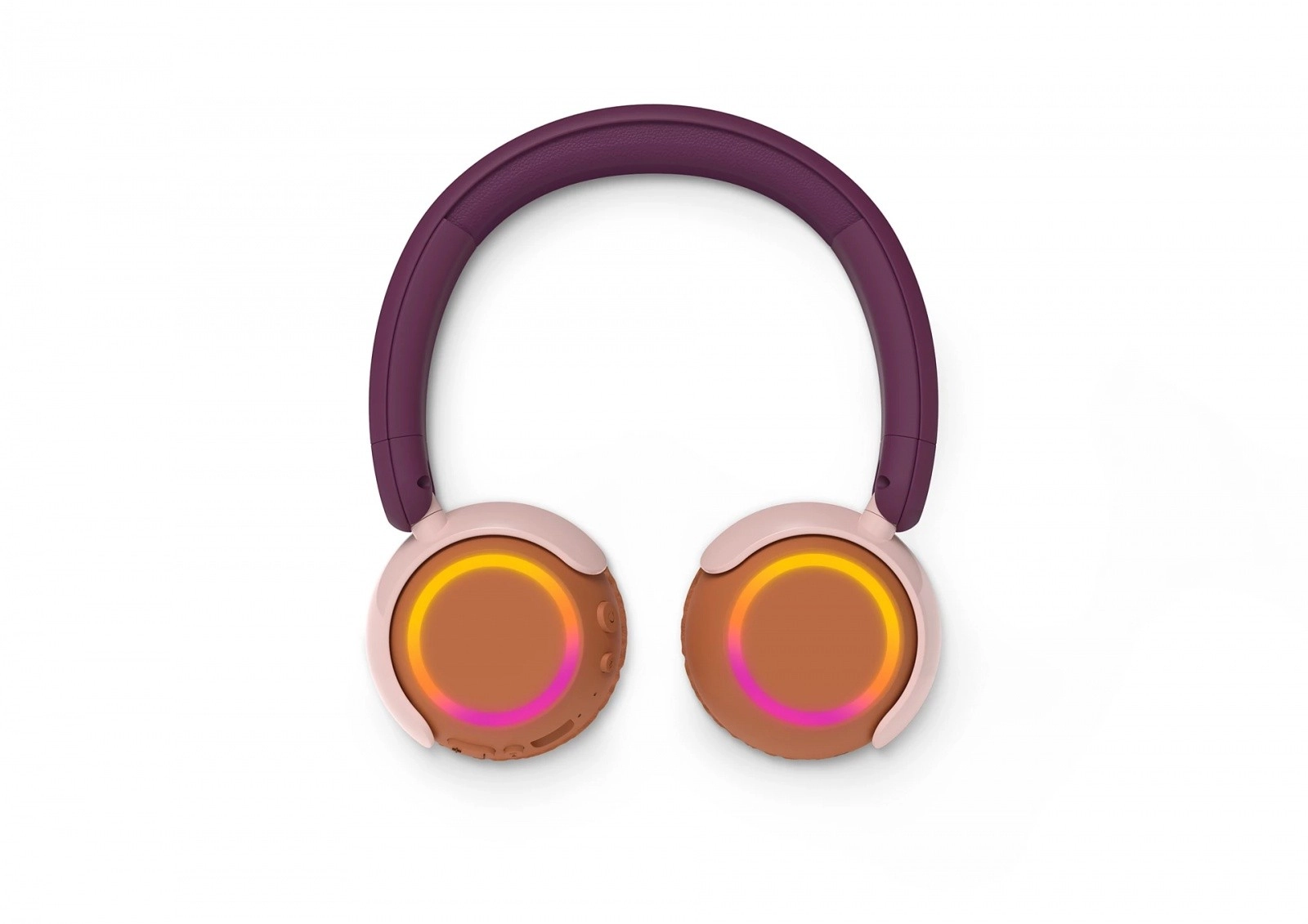 Otroške brezžične slušalke Philips so zasnovane za varno in zabavno poslušanje doma in na poti. Omejitev glasnosti na 75 dB za domačo uporabo ter izbirni potovalni način 85 dB prek aplikacije ščitita občutljiv otroški sluh. Barvni LED obročki na školjkah dodajo slog in veselje pri poslušanju.