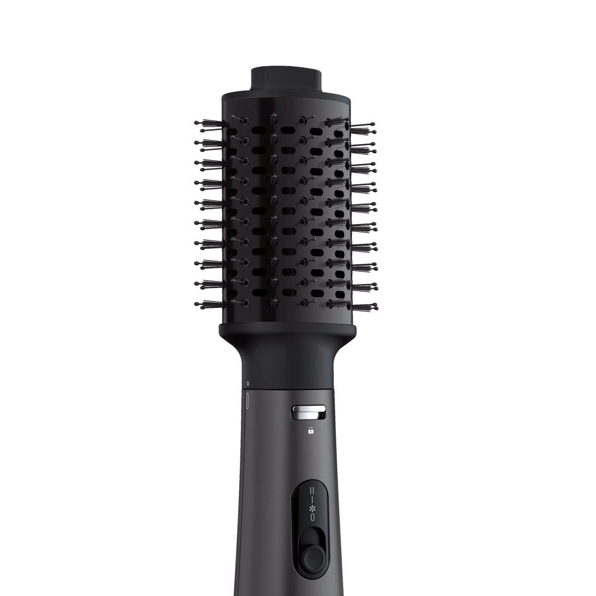 Praktično drsno stikalo omogoča hitro izbiro nastavitev, varnostna ključavnica drži nastavke trdno na mestu, odstranljiv filter pa olajša čiščenje in podaljšuje življenjsko dobo naprave. V paketu najdete vse za natančno oblikovanje in preprosto vzdrževanje.
