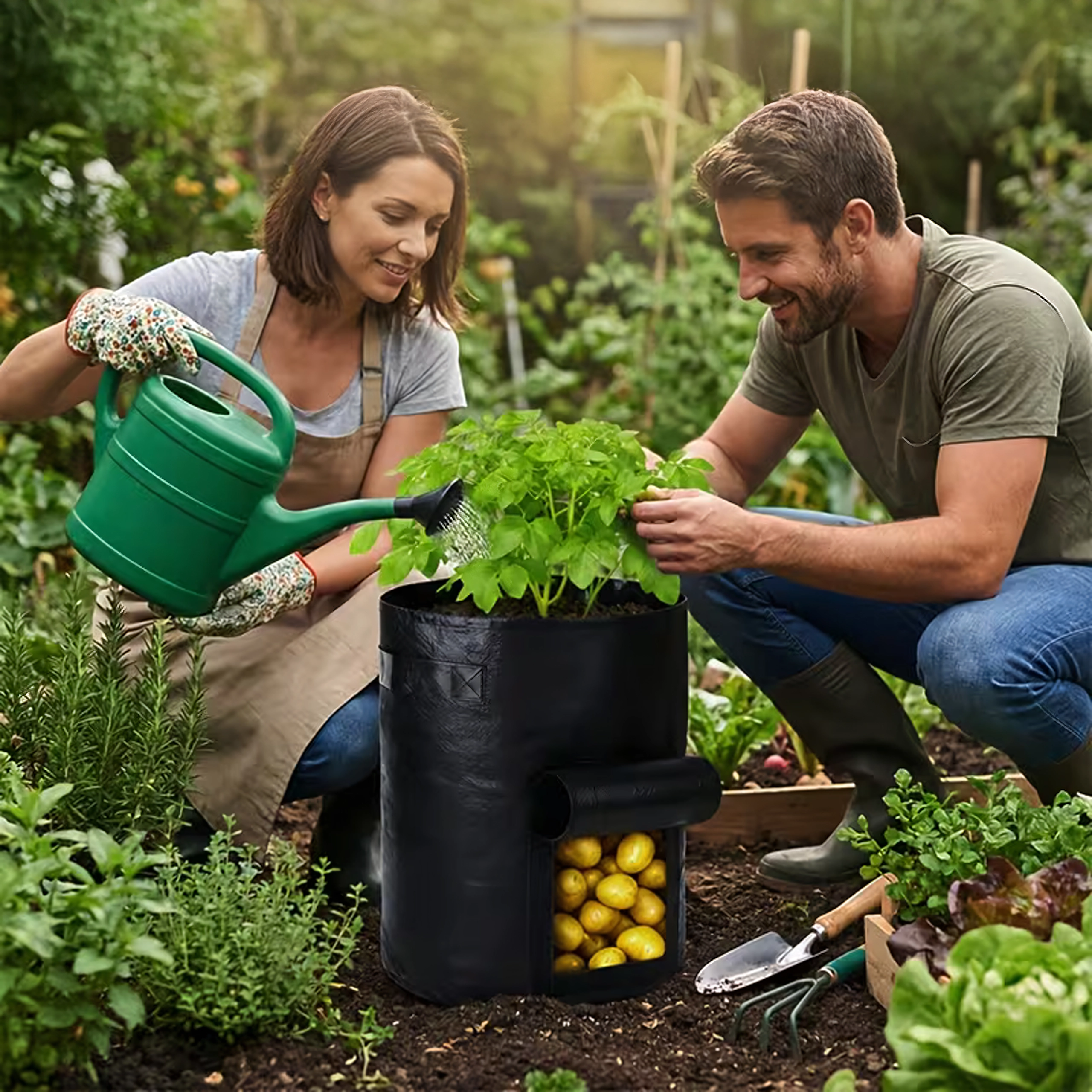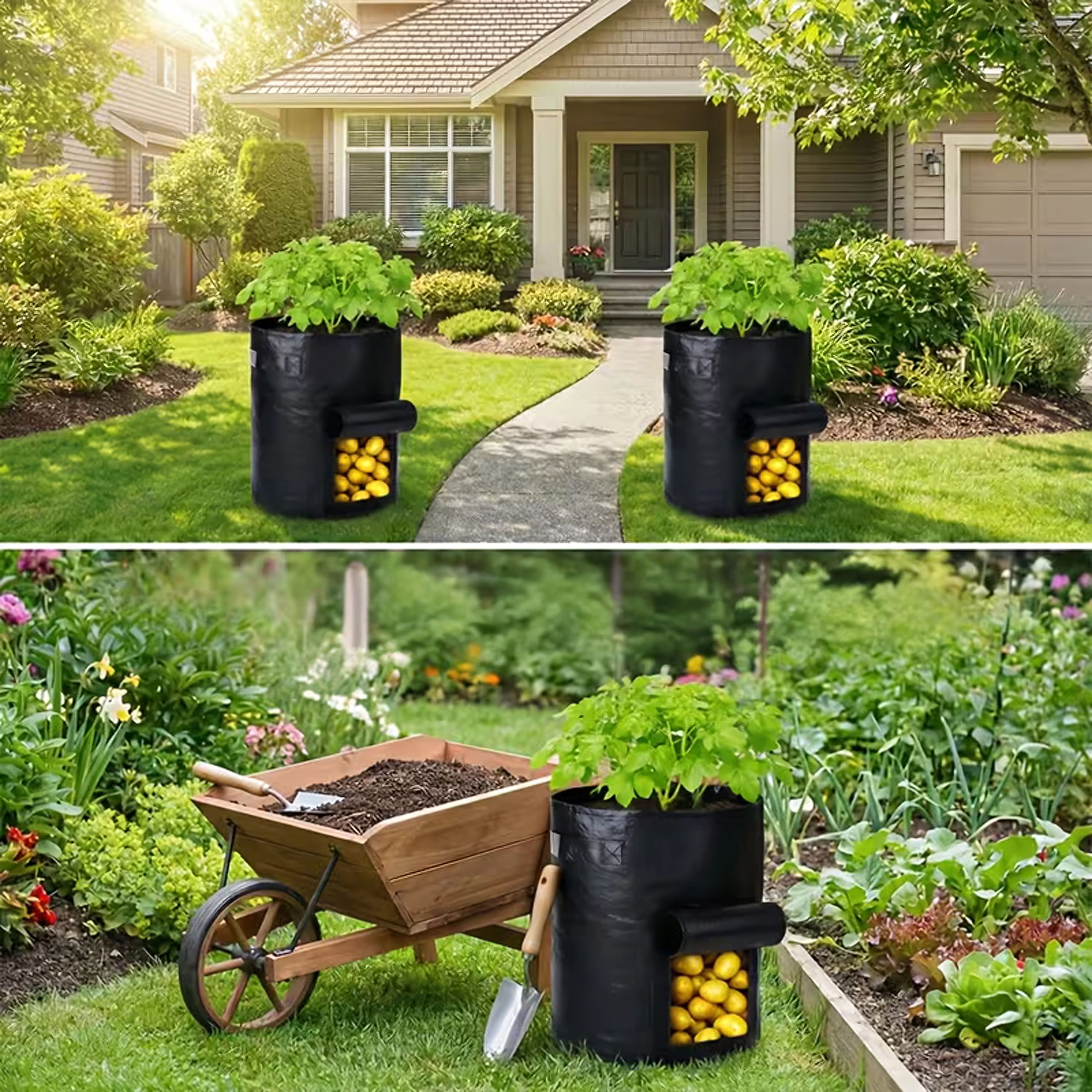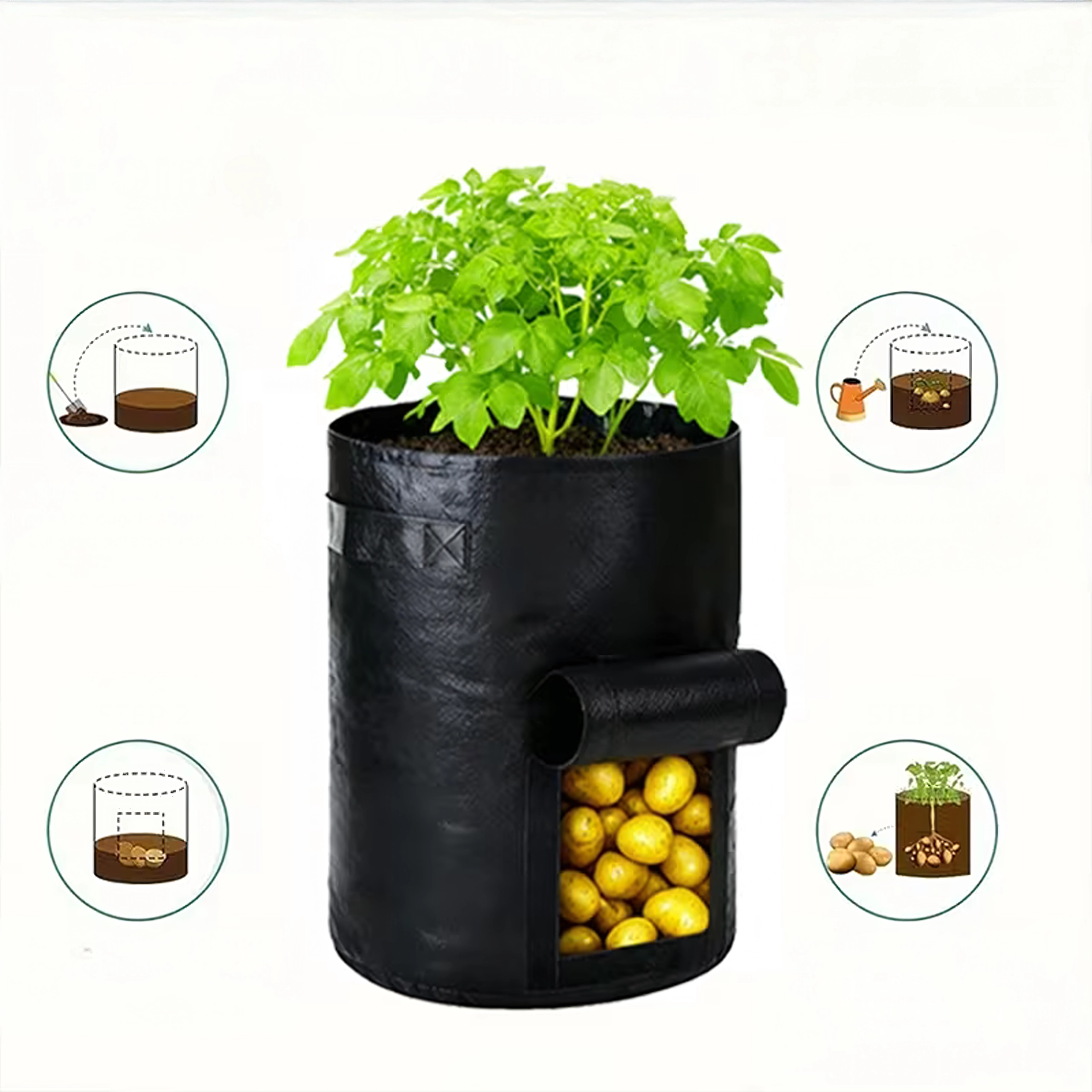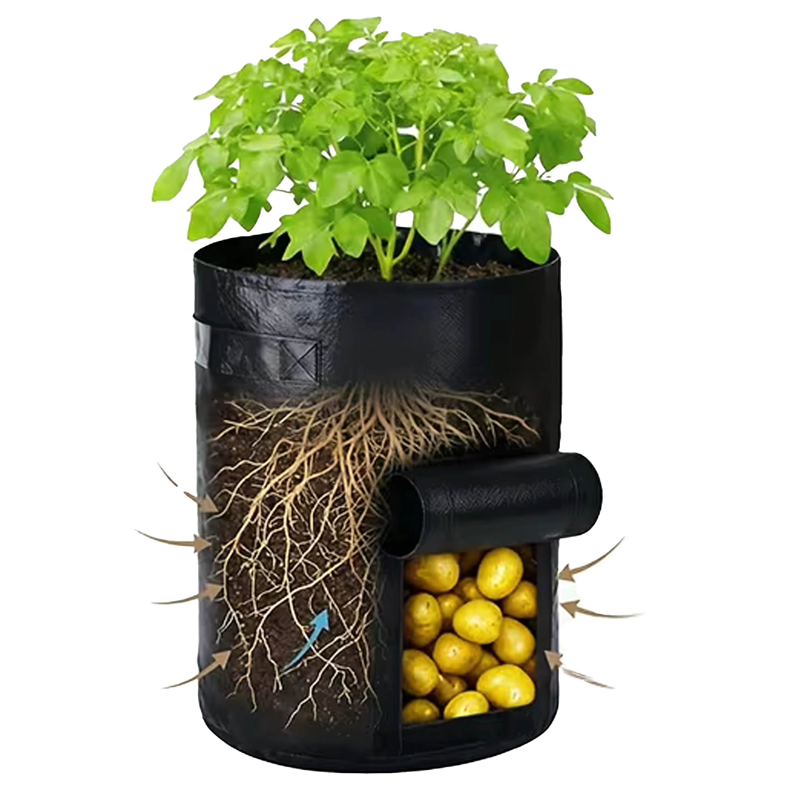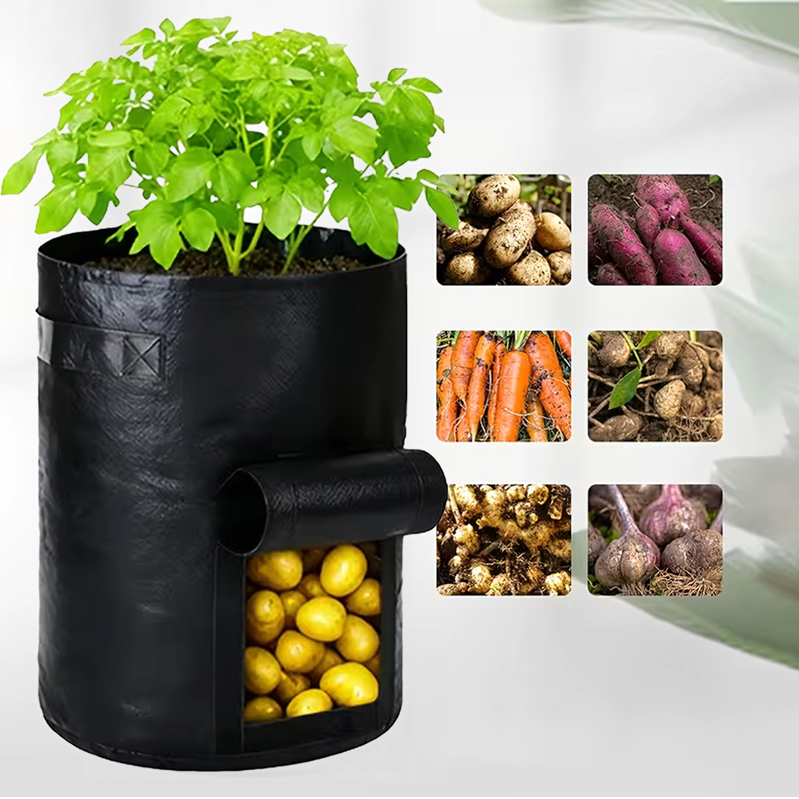 Maksimizirajte pridelek tudi na majhnem prostoru. Ta gojitvena vreča je idealna za krompir, korenje, redkvice, čebulo ali zelišča. Stransko okence z ježkom olajša sprotno kontrolo in žetev – brez presipanja substrata.