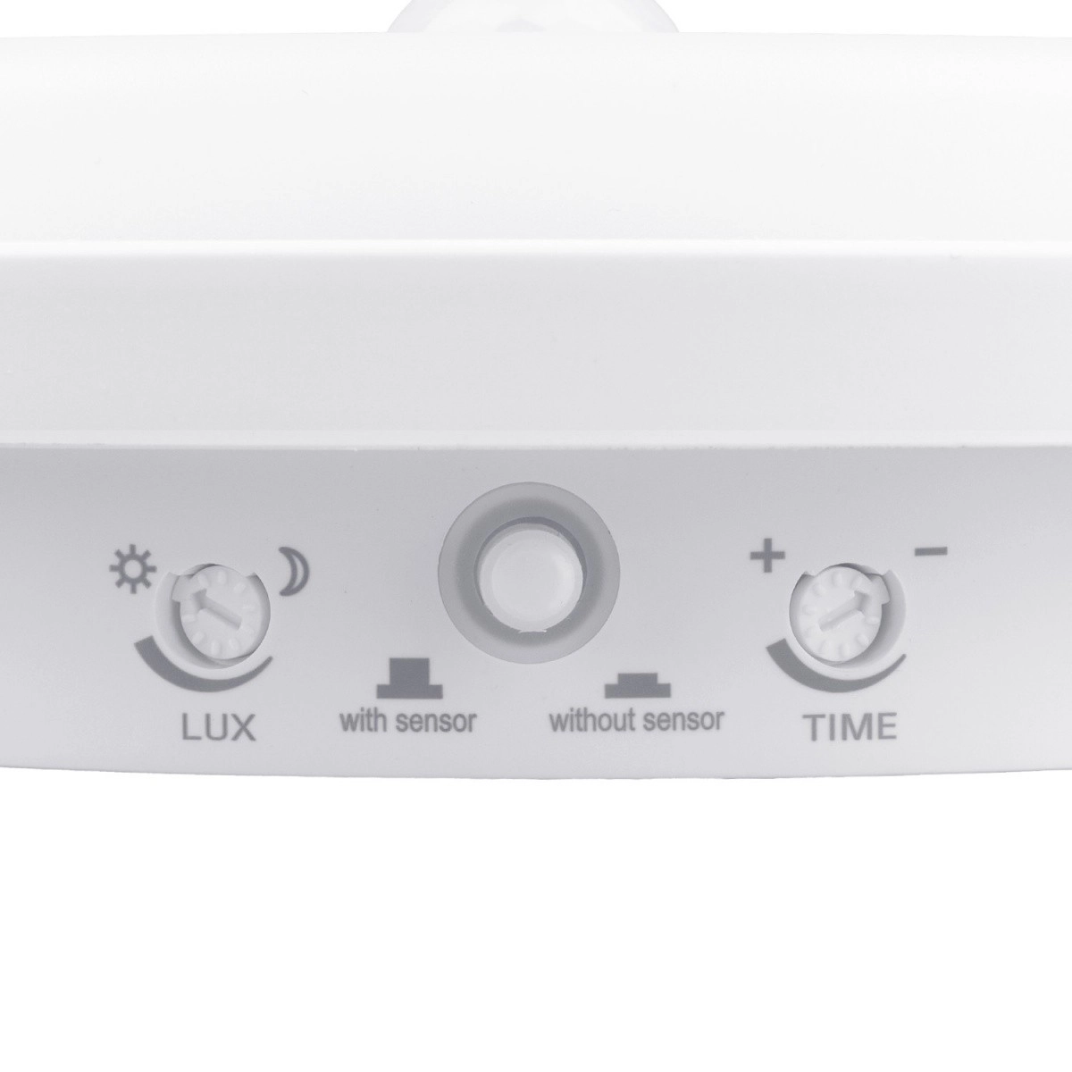 Integrirani detektor gibanja z dosegom do 9 m in pokritostjo 140° prižge luč le, ko je to res potrebno. Nastavljiv somrakovni način omogoča delovanje podnevi in ponoči.