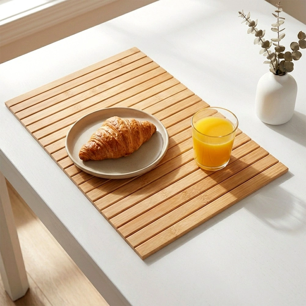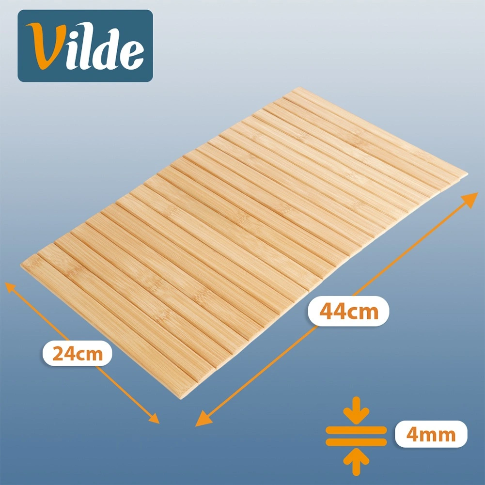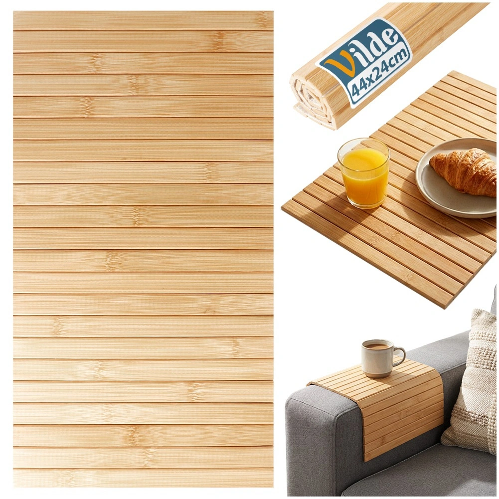 Ta bambusova podloga z merami 44 × 24 cm je vsestranski pomočnik za kuhinjo in dnevno sobo. Naravni bambus prostoru doda zračen, moden videz, medtem ko čvrste lamele zanesljivo ščitijo površine pred toploto, vlago in praskami. Zaradi prilagodljive izvedbe jo zlahka prilagodite različnim površinam.