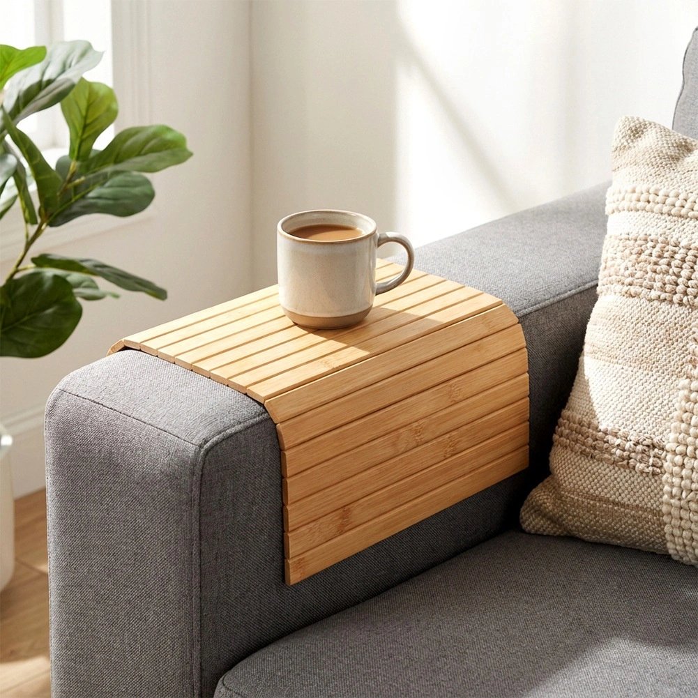 Lamele se prilagodijo obliki naslona za roke in ustvarijo raven položaj za skodelico, kozarec ali drobnarije – praktična rešitev brez stranske mizice.