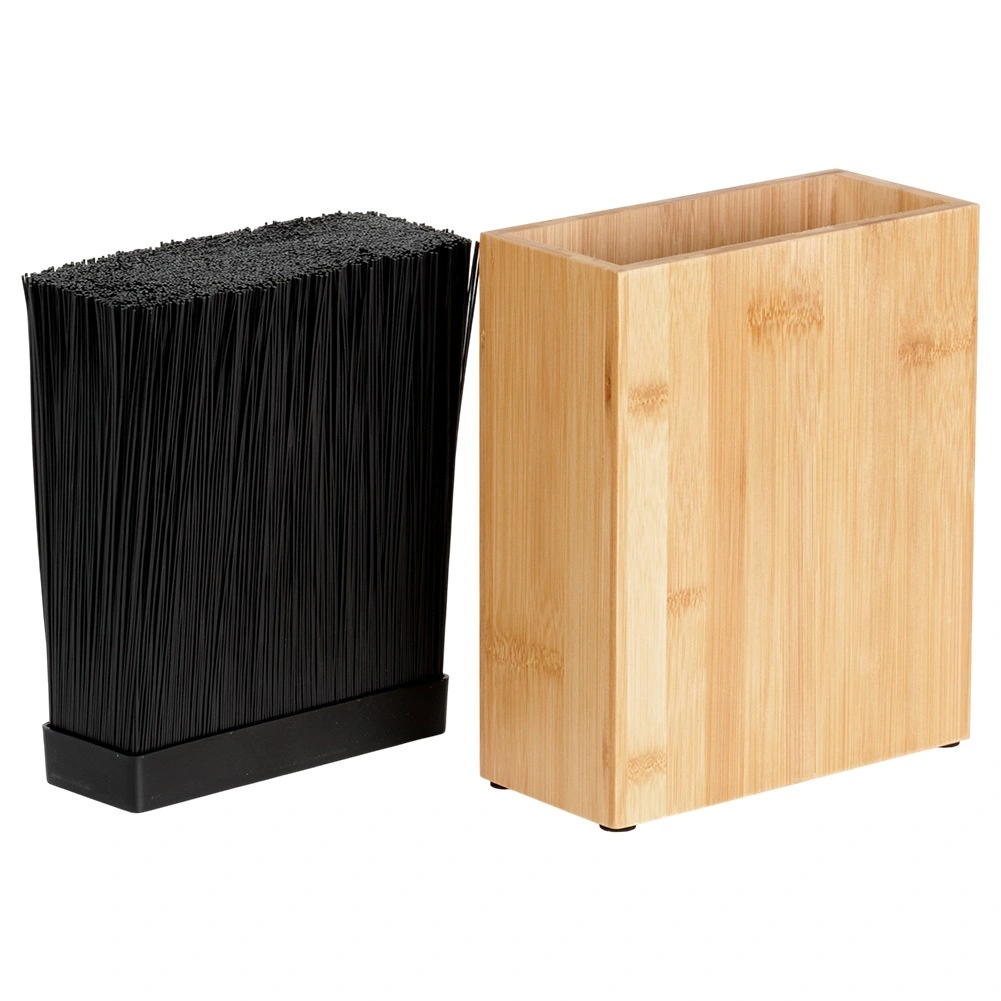 Sodoben in praktičen blok za nože iz naravnega bambusa bo vaše kuhinjske pripomočke ohranil vedno pri roki. Univerzalna bristol (ščetinasta) vložka se prilagodi obliki in širini rezila ter ščiti ostrino pred topenjem. Sodobna, a brezčasna zasnova se poda v vsako kuhinjo.