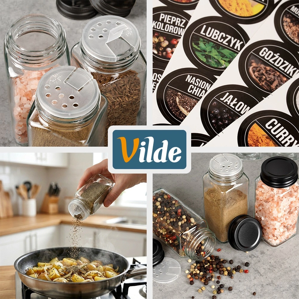 Uredite začimbe v slogu in pregledno. Ta popoln set steklenih začimbnic združuje estetiko in praktičnost – začimbe boste imeli vedno pri roki in hkrati elegantno razstavljene. Odporno steklo ohranja aromo in svežino, kovinski pokrovčki zanesljivo tesnijo in ščitijo vsebino pred vlago.