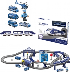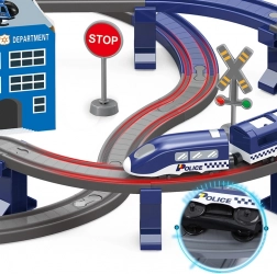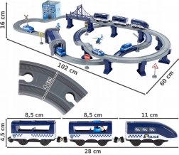 Električna policijska vlakovna proga z avtomobili, 92 delov, 300 cm
