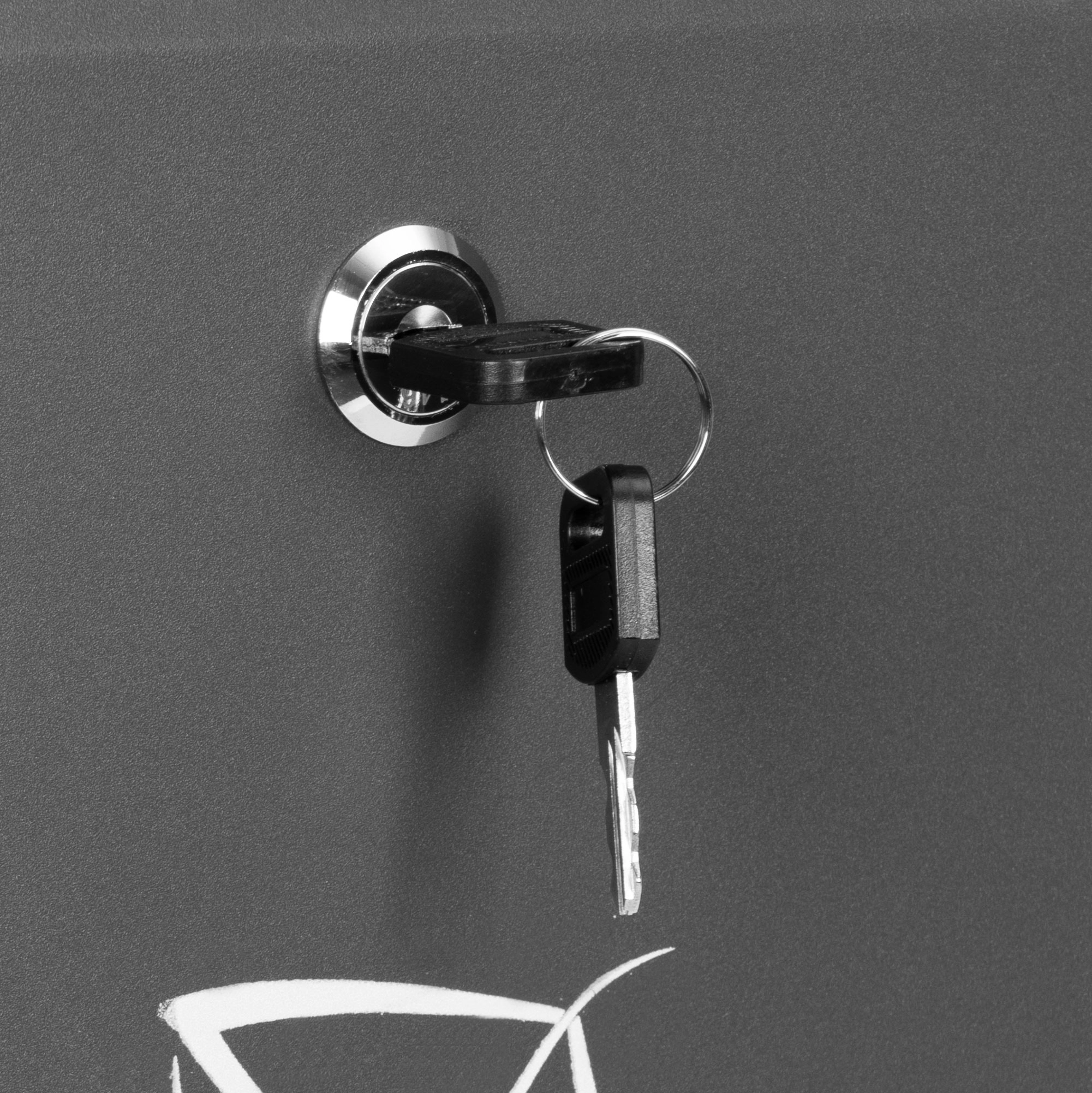 Praktično valjasto držalo za časopise v spodnjem delu hrani letake in tisk brez potrebe po odpiranju glavnih vratc. Široka sprednja vratca olajšajo prevzem pošiljk, ključavnica z dvema ključema pa nudi nadzor nad vsebino za vse člane gospodinjstva. Del paketa je montažni komplet za hitro in trdno namestitev.