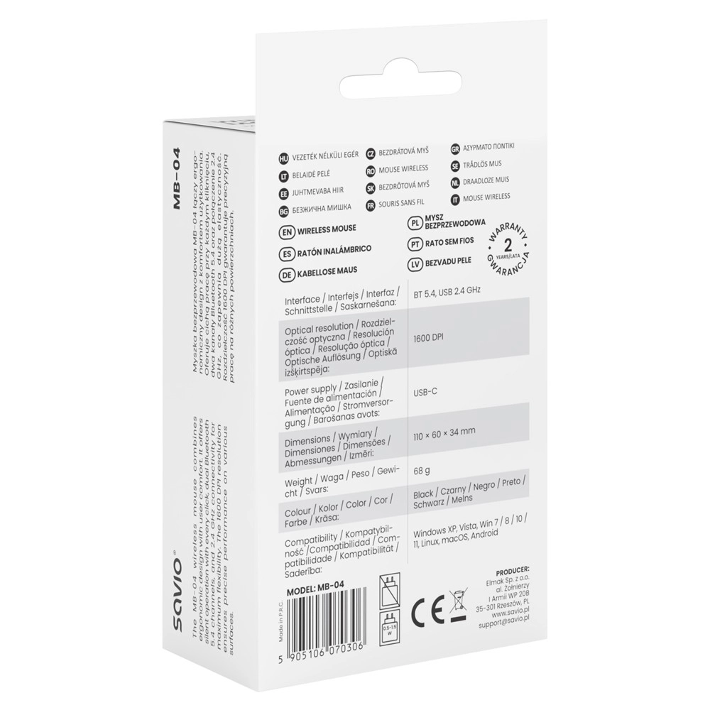 Iščete tiho in zanesljivo miško za pisarno, dom ali delo na poti? MB-04 združuje sodobne brezžične tehnologije z elegantnim, ergonomskim dizajnom. Nizka teža 68 g zmanjšuje obremenitev zapestja tudi pri dolgotrajni uporabi, tihi stikalci pa zmanjšujejo moteče zvoke v odprti pisarni ali kavarni.