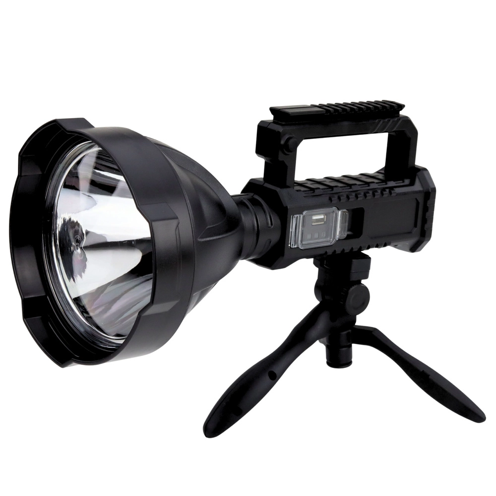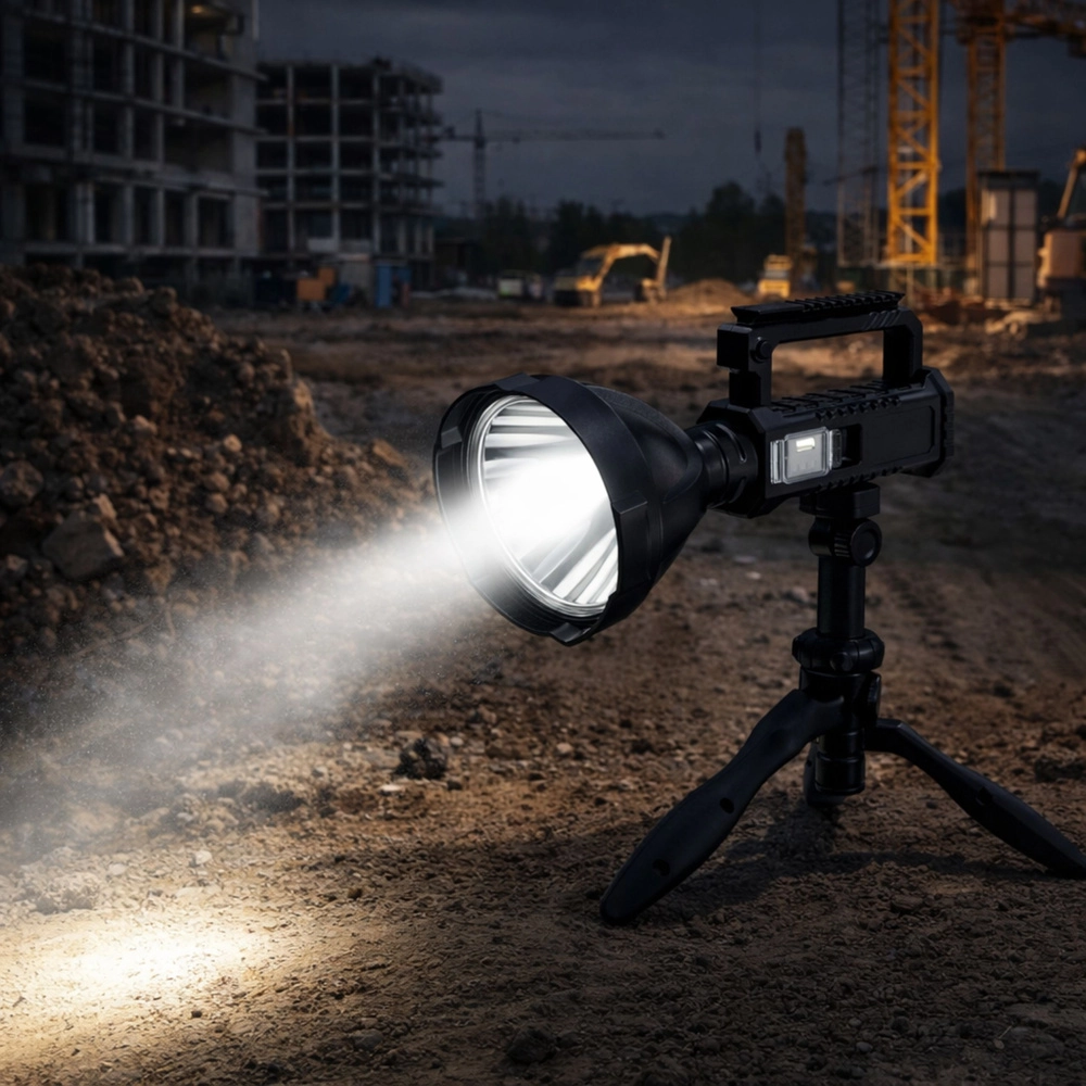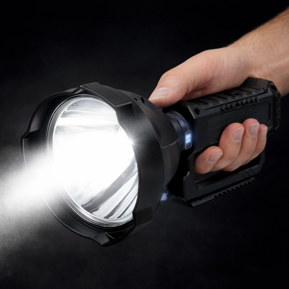 Velika parabola in globok reflektor ustvarjata ozek, daljnosežen svetlobni stožec – idealno za iskanje, delo na terenu in nočne aktivnosti.