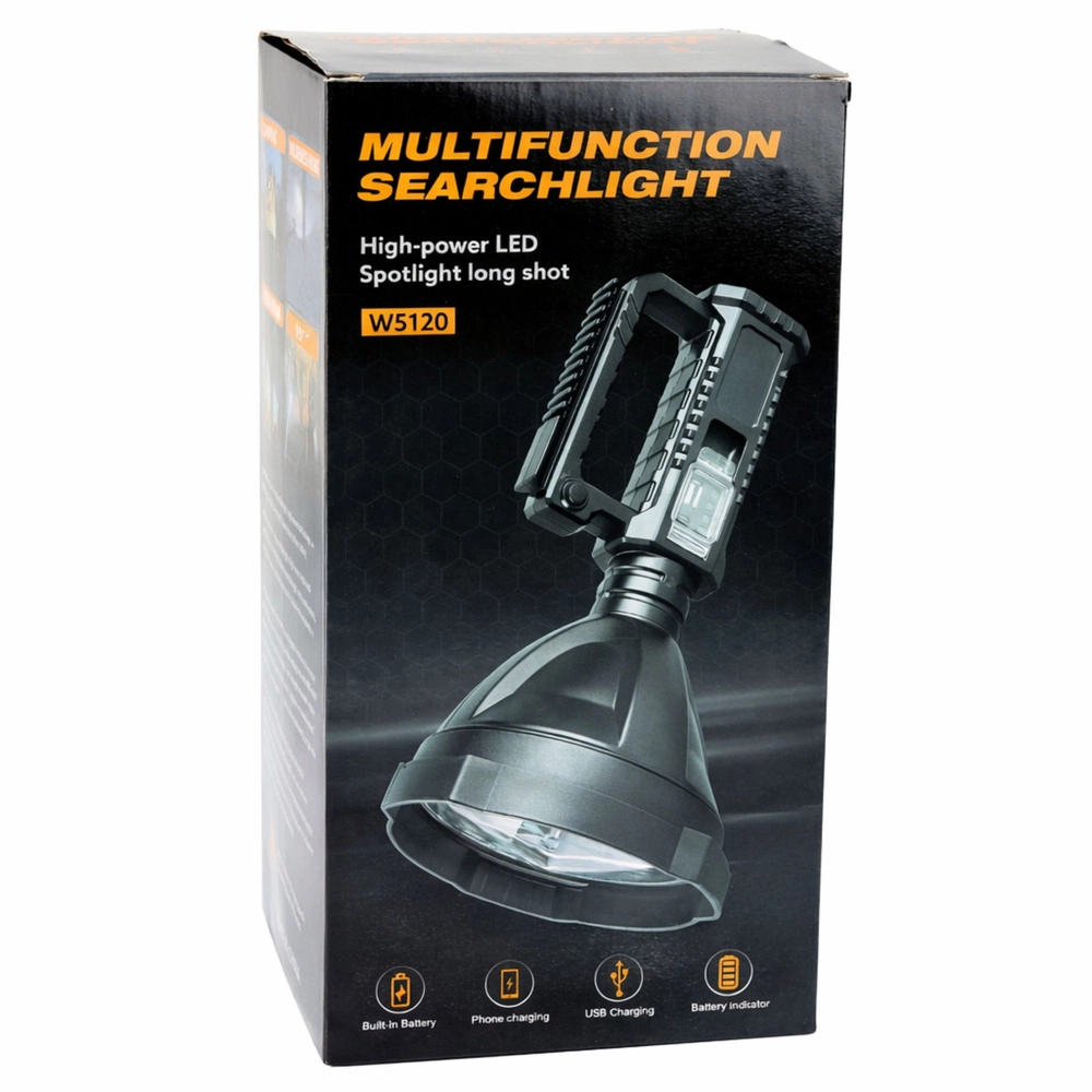 Reflektor ima vgrajen akumulator s polnjenjem prek USB ter priročno funkcijo powerbanke za nujno polnjenje telefona. Vodoodpornost IPX5 ščiti pred dežjem in brizganjem vode. Ergonomski ročaj in robustna izdelava zagotavljata udoben prijem in dolgo življenjsko dobo.