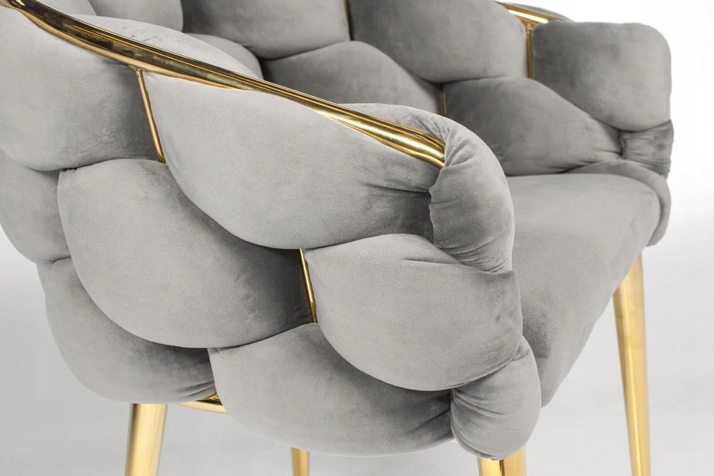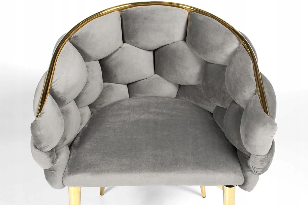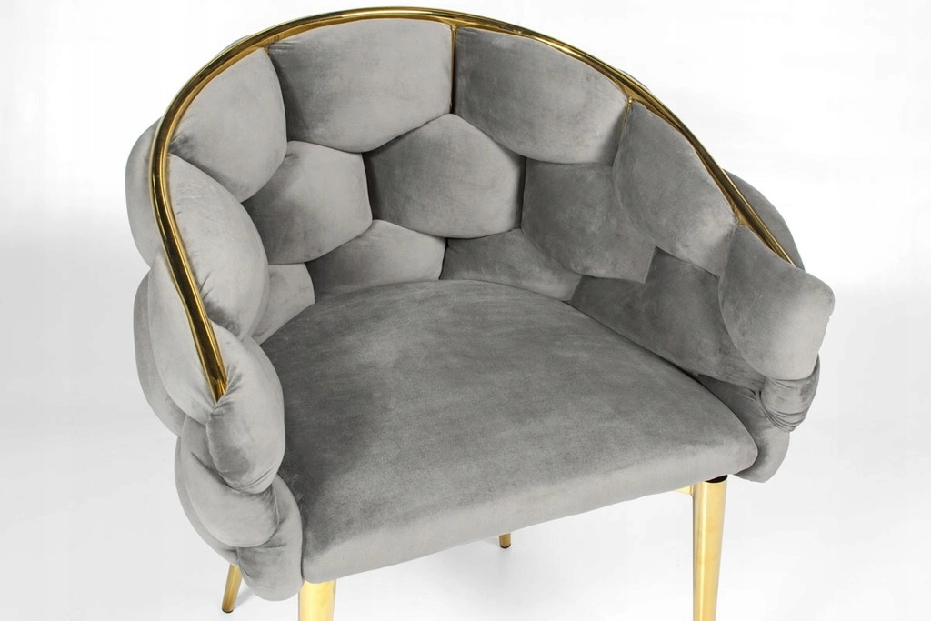 Elegantni stol FERTONE BALLOON združuje luksuzni žamet, udobno kreslasto oblikovanje in zlate kovinske noge v stilski sedež za jedilnico, dnevno sobo ali toaletno mizico. Mehko oblazinjenje, ki objame naslon, ter univerzalna siva barva zagotavljata udobje in enostavno ujemanje z modernim interierjem. Nosilnost do 100 kg in enostavno vzdrževanje za vsakodnevno uporabo.