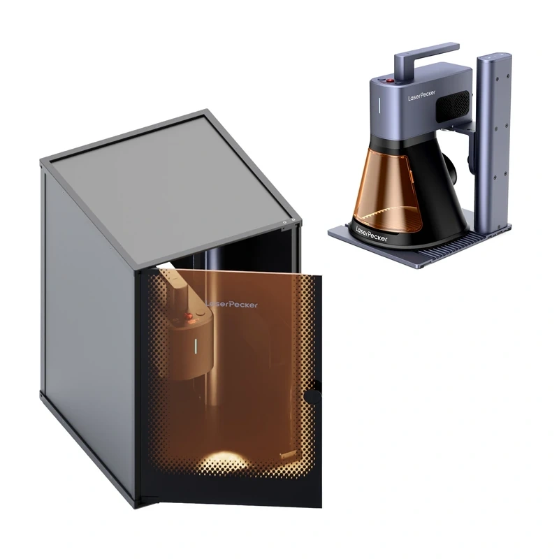 Varnost Safeguard: Zaščitno ohišje z magnetnim filtrom in senzorjem odpiranja, izredni gumb, učinkovito odsesavanje hlapov in združljivost s čistilnikom zraka. Intuitivna programska oprema LaserPecker Design Space (iOS/Android/Windows/macOS) in podpora za LightBurn zagotavljata gladek potek dela od predogleda do končnega graviranja.