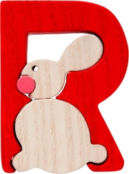 Lesena črka R z zajčkom otrokom na zabaven način pomaga osvojiti osnove abecede. Uporabite jo lahko kot del sestavljanke, za sestavo imena ali kot dekoracijo na steno oziroma pohištvo (z uporabo obojestranskega lepilnega traku). Masivna izvedba zagotavlja dolgo življenjsko dobo in varno igro.