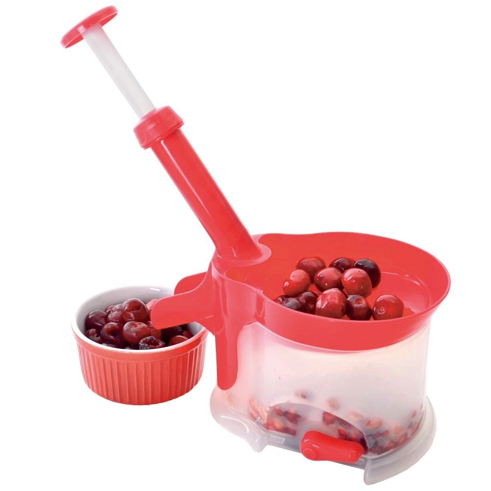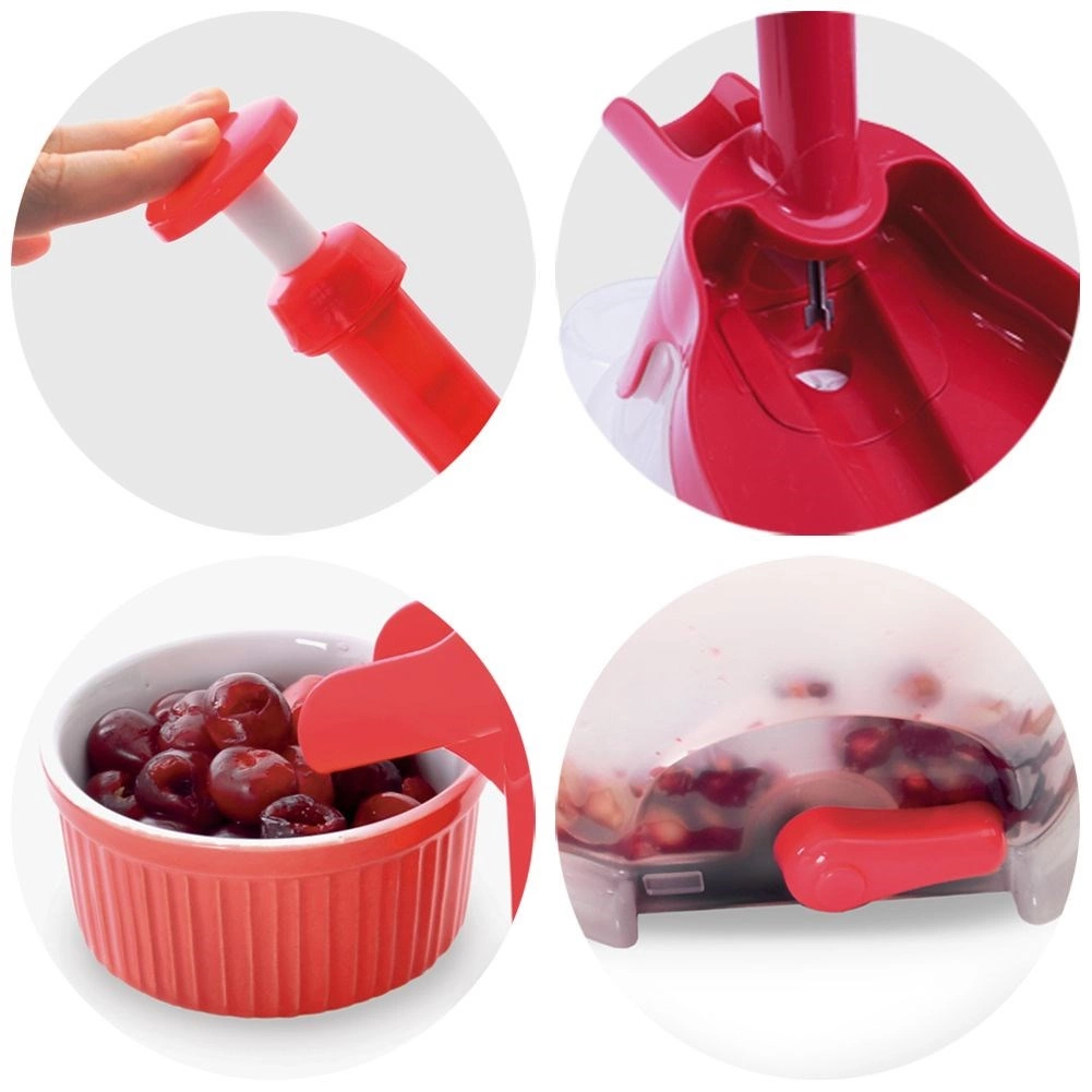 Zahvaljujoč trpežni plastiki v rdeči in polprosojni beli barvi je naprava lahka, a robustna. Posoda za zbiranje ujame koščice in sok, izliv pa olajša sprotno praznjenje. V paketu prejmete tudi dva nadomestna gumijasta obročka za daljšo življenjsko dobo. Po uporabi ga preprosto razstavite in operete v pomivalnem stroju.
