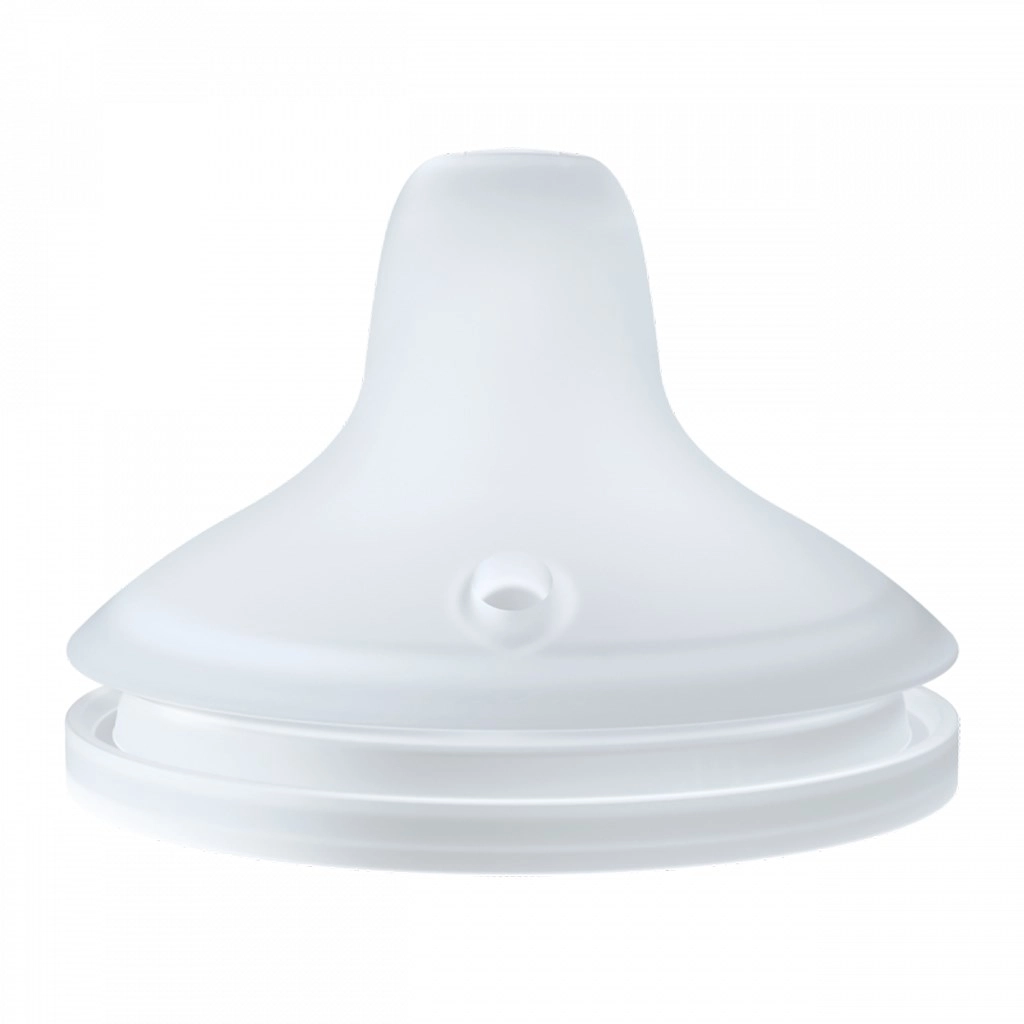 Silikonski nadomestni ustnik NUK Perfect Match je zasnovan za naraven in miren prehod iz otroške stekleničke na vadbeni lonček. Zahvaljujoč mehkem, prožnem silikonu in širokemu robu za stabilno oporo ustnic otroci udobno pijejo brez nepotrebnega stresa.