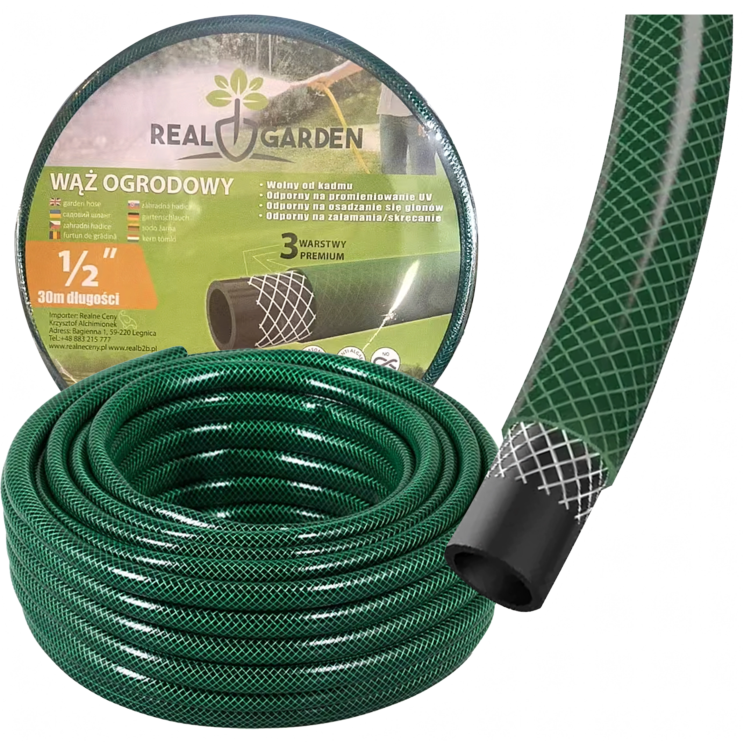 Z dolžino 30 metrov zlahka dosežete vse kotičke vrta, premer 1/2" pa je združljiv z običajnimi hitrimi spojkami in razpršilniki. Odpornost zunanje površine bolje prenaša zunanje razmere ter olajša navijanje in shranjevanje.