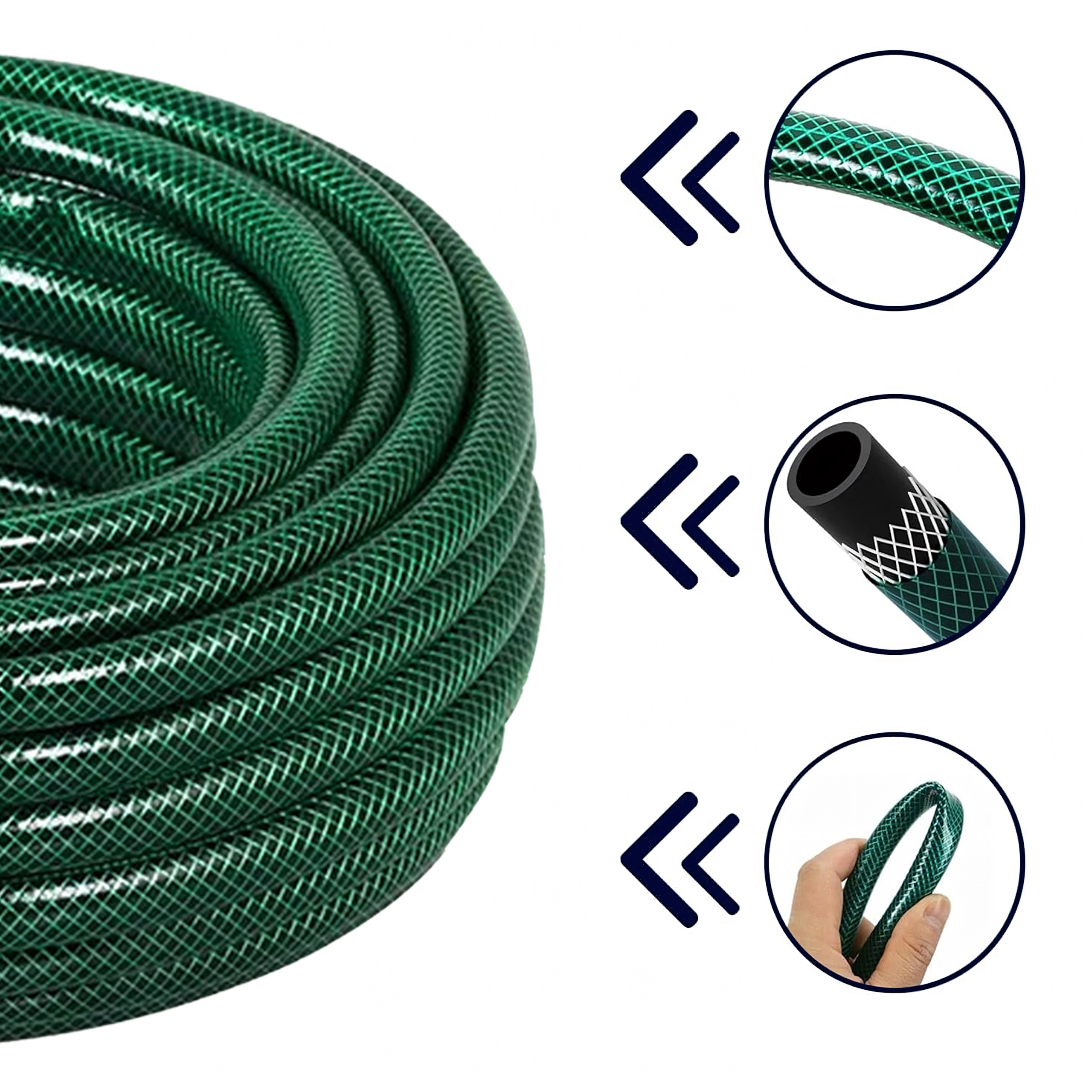 Praktična vrtna cev dolžine 30 m in premera 1/2" ponuja 3-slojno zasnovo, ki zagotavlja visoko trpežnost, prožnost brez lomljenja in zanesljiv pretok vode za vsakodnevno zalivanje vrta, pranje avtomobila in čiščenje okoli hiše.