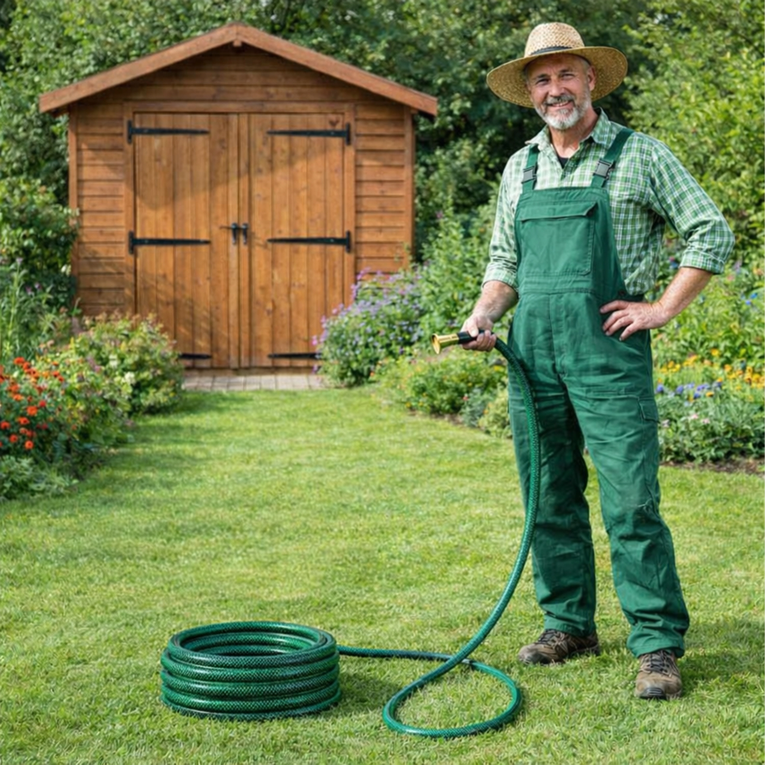 Ta 3-slojna gumijasta vrtna cev je idealna izbira za vsakogar, ki išče kombinacijo dolge življenjske dobe in udobnega rokovanja. Tekstilna ojačitev s križnim pletivom povečuje odpornost proti tlaku in zmanjšuje tveganje za lomljenje, zato voda teče gladko tudi pri pogosti uporabi.