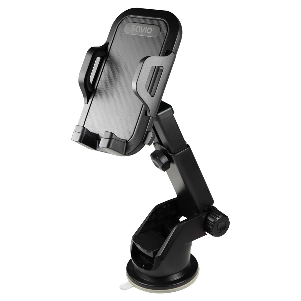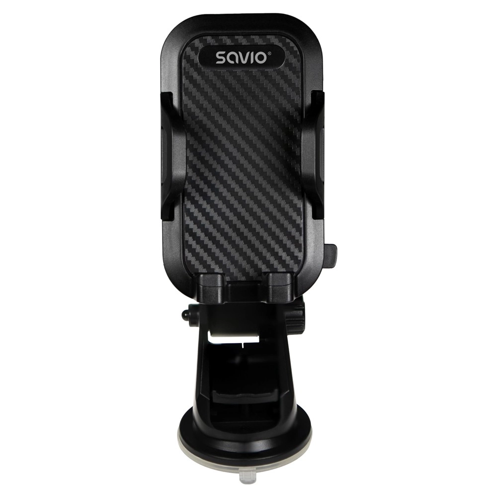 Univerzalni avtomobilski nosilec Savio s priseskom drži vaš telefon trdno in varno na vetrobranskem steklu ali armaturni plošči. Ponuja stabilno pritrditev, 360° vrtljiv zglob in teleskopsko nastavljivo dolžino za idealen položaj. Mehke silikonske blazinice ščitijo napravo pred praskami, čeljusti pa sprejmejo večino pametnih telefonov širine 55–113 mm.