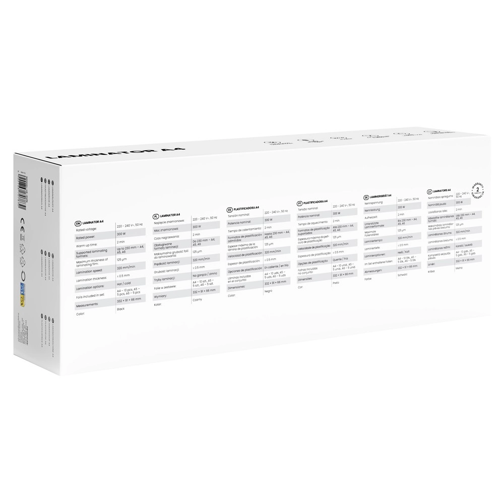 - Laminator LR-01/B, začetni set folij: 10× A4, 5× A5, 5× A6