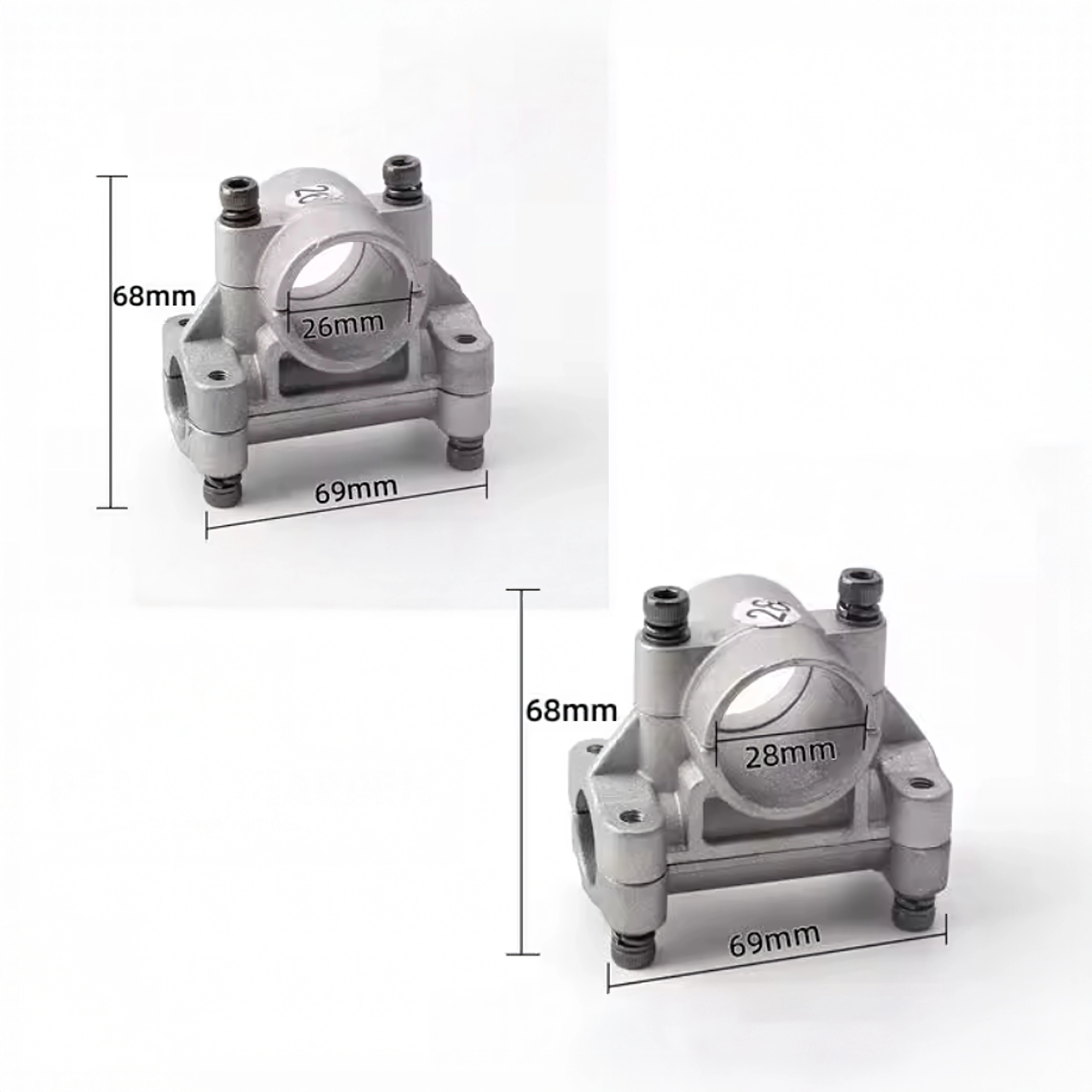 Nastavljiva objemka varno sede na cevi kosilnice s premerom 26–28 mm. Montaža je hitra in brez posebnega orodja.