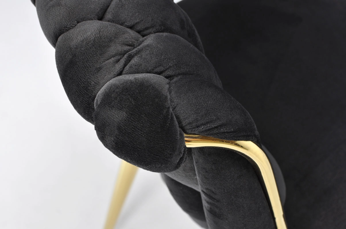 Zahvaljujoč oblazinjenju iz kakovostne pene in udobni višini sedenja je stol primeren za vsakodnevno uporabo. Stabilna jeklena osnova v zlati barvi zagotavlja trdnost in dolgo življenjsko dobo, kontrast črne in zlate pa poudari razkošno vzdušje interierja.
