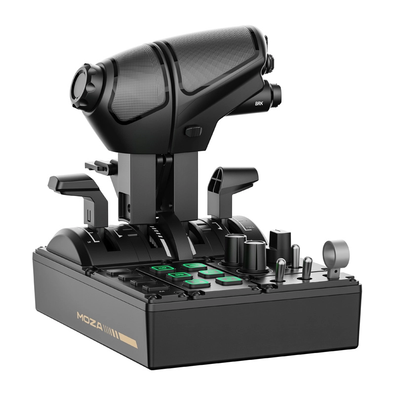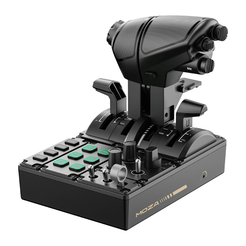 Bogata zbirka stikal, vrtljivih izbirnikov in osvetljenih gumbov razširja nadzor nad sistemi letala. Popolna združljivost z ekosistemom MOZA brez potrebe po zapleteni nastavitvi.