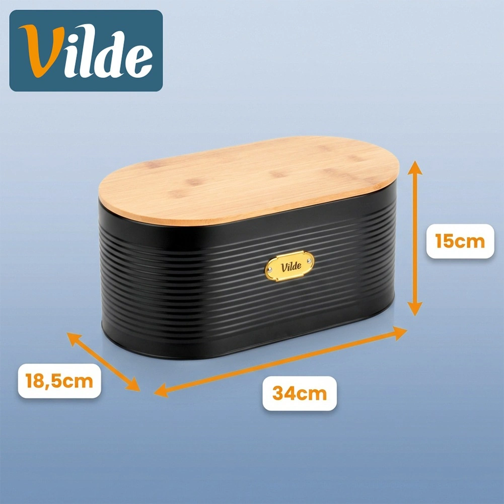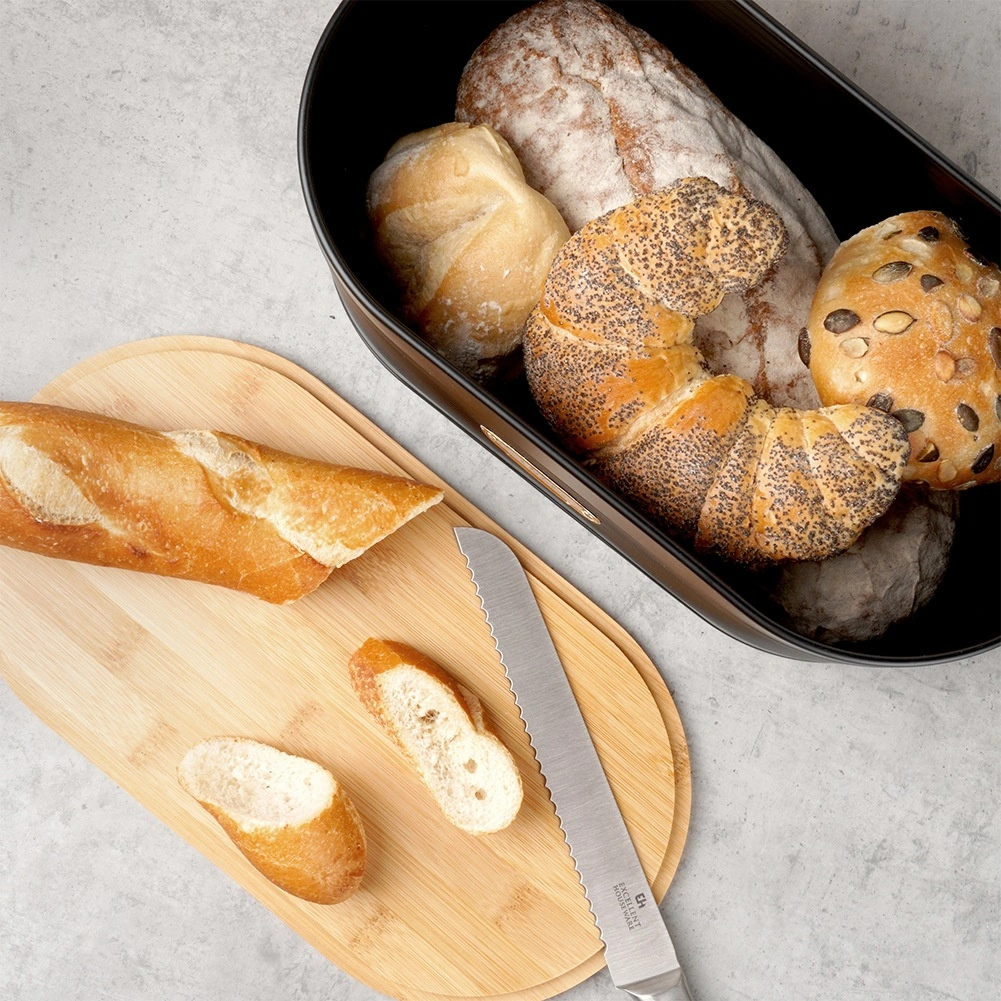 Dizajnerski zabojnik za kruh združuje odporen lakiran kov z naravnim bambusom za dolgotrajno svežino pečiva in urejen kuhinjski pult. Zaradi ovalne oblike in mer 34 × 18,5 × 15 cm je dovolj prostoren za kruh, žemlje, rogljičke in drugo pecivo.