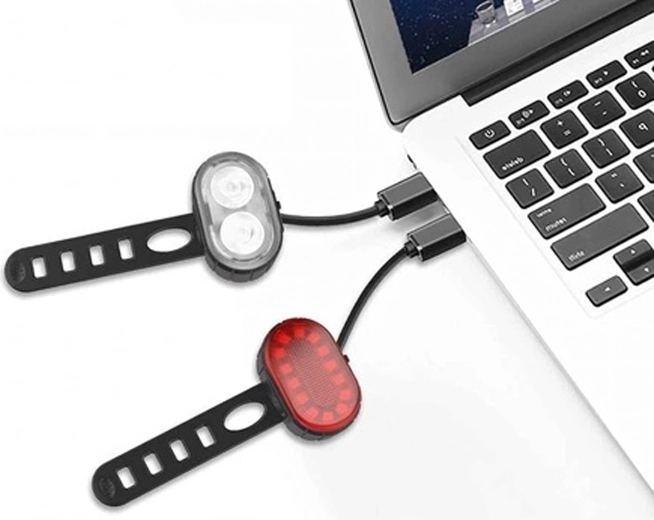 - 1× sprednja luč, 1× zadnja luč, USB kabel(i), pritrdilni trakovi