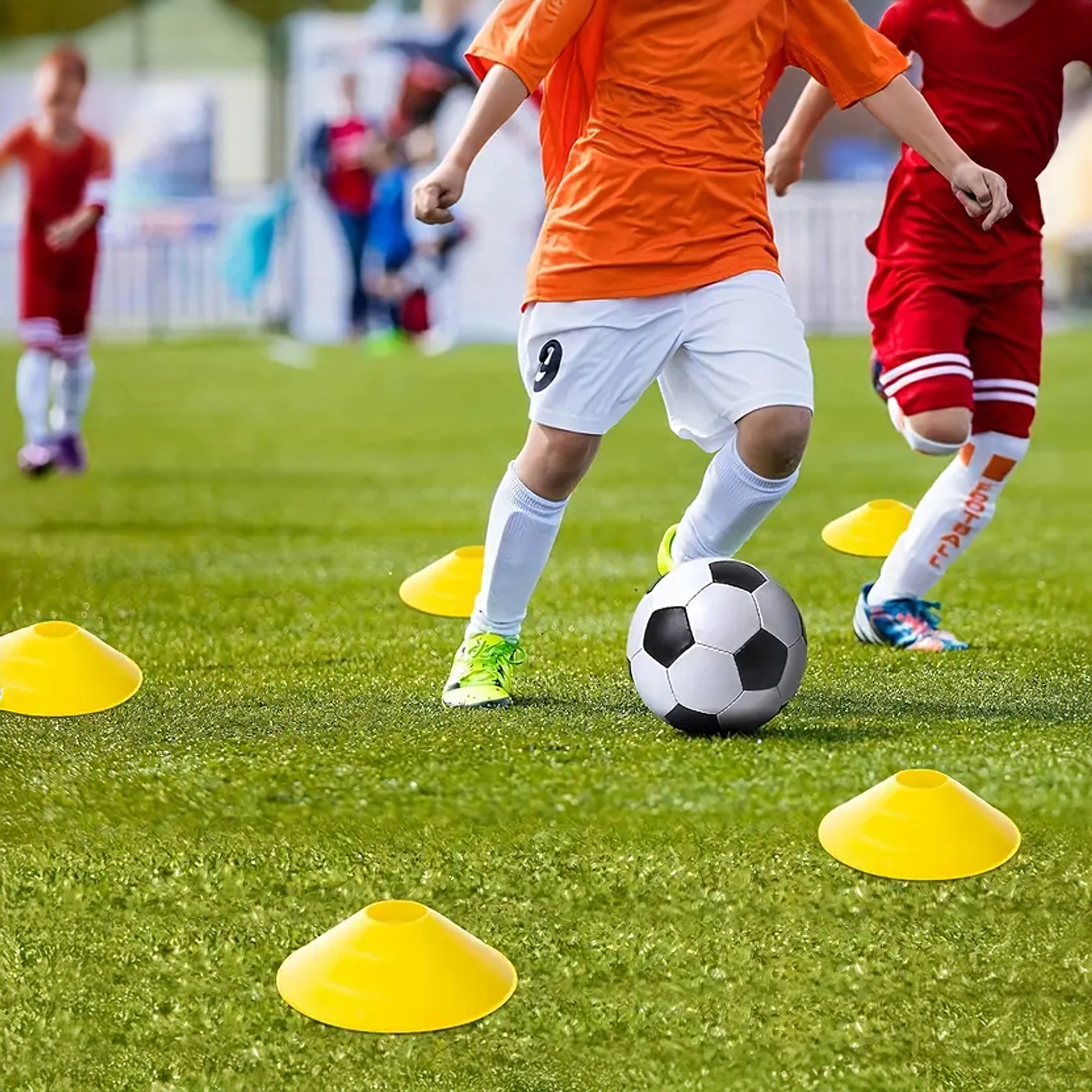 Nizkoprofilne ovire in izraziti stožci razvijajo koordinacijo, odriv in spremembe smeri. Odlično za tehnične vaje v nogometu, atletiki in ekipnih športih.