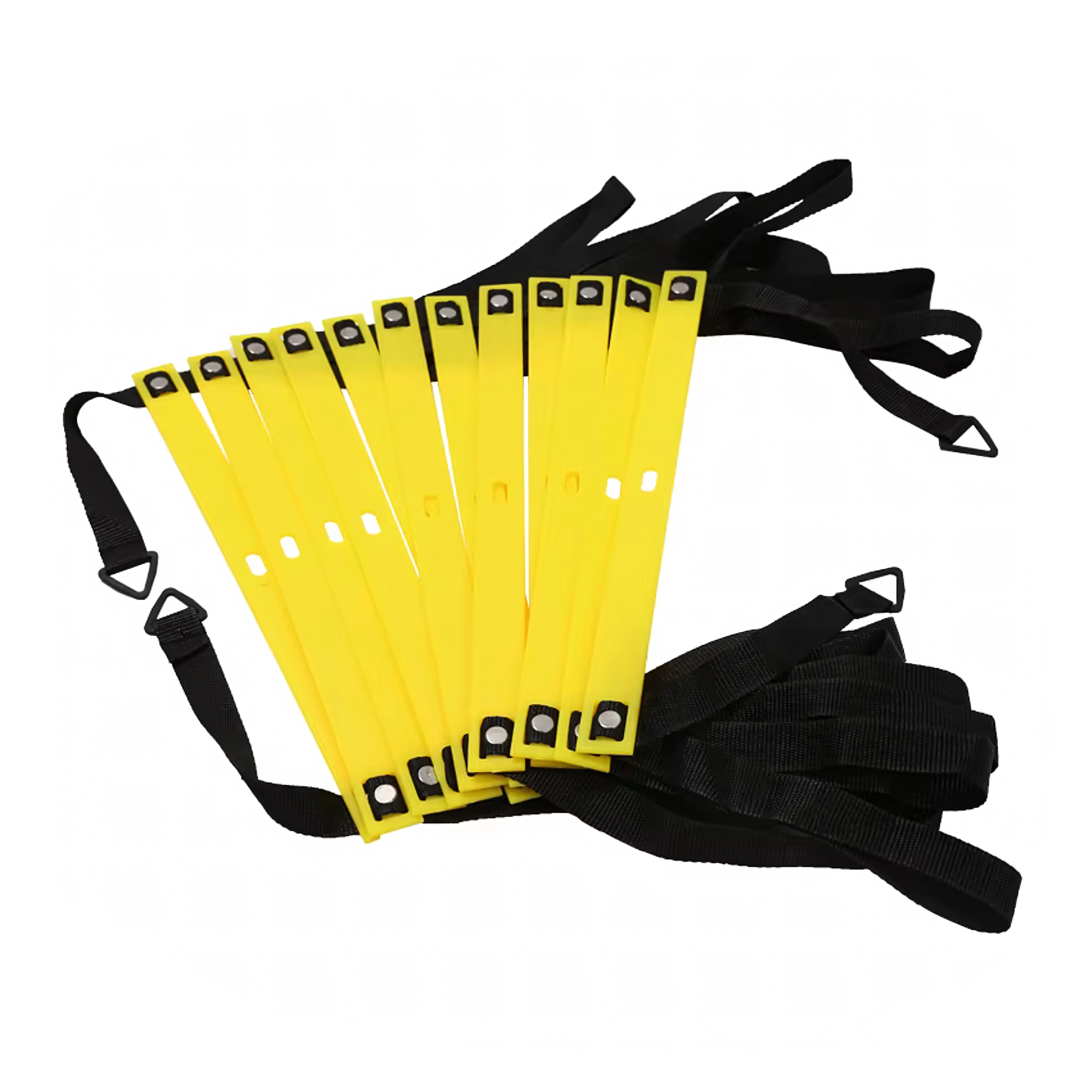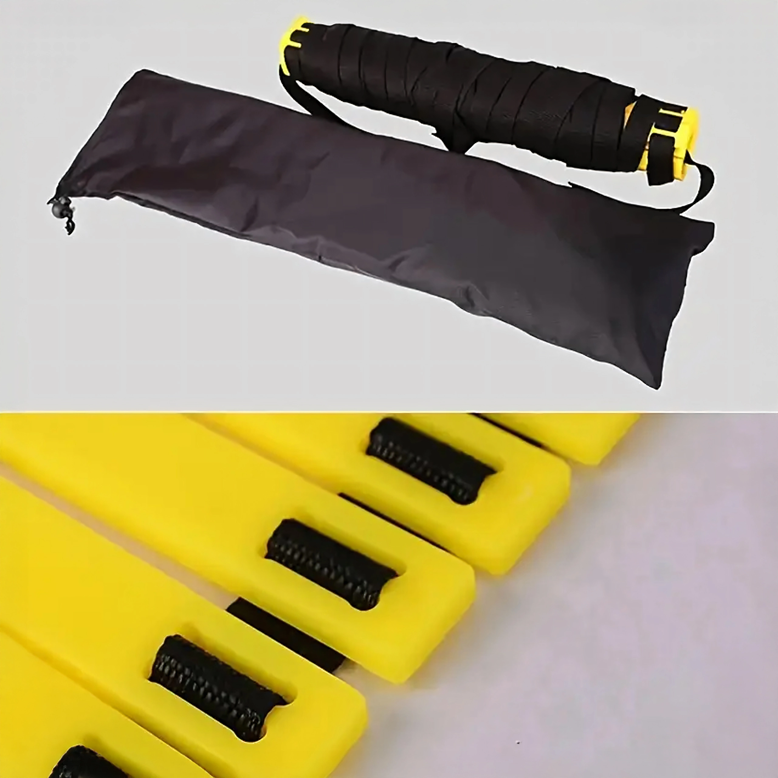 Ploščate rumene prečke na trpežnih trakovih je mogoče preprosto premikati. Idealno za hitre korake, lateralno gibanje ter izboljšanje ravnotežja in ritma teka.