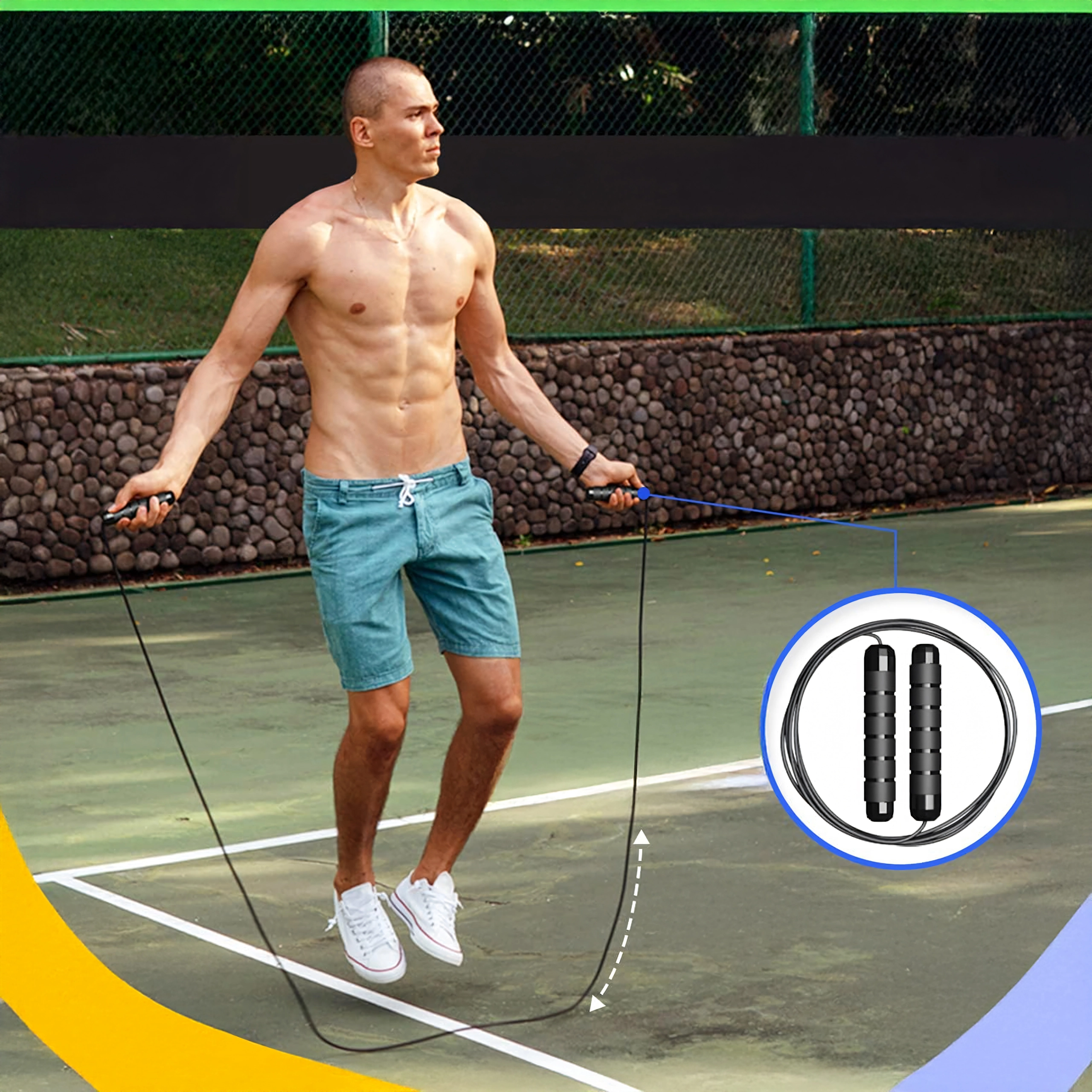 - Ergonomski nedrseči ročaji, vzdržljiva vrvica
