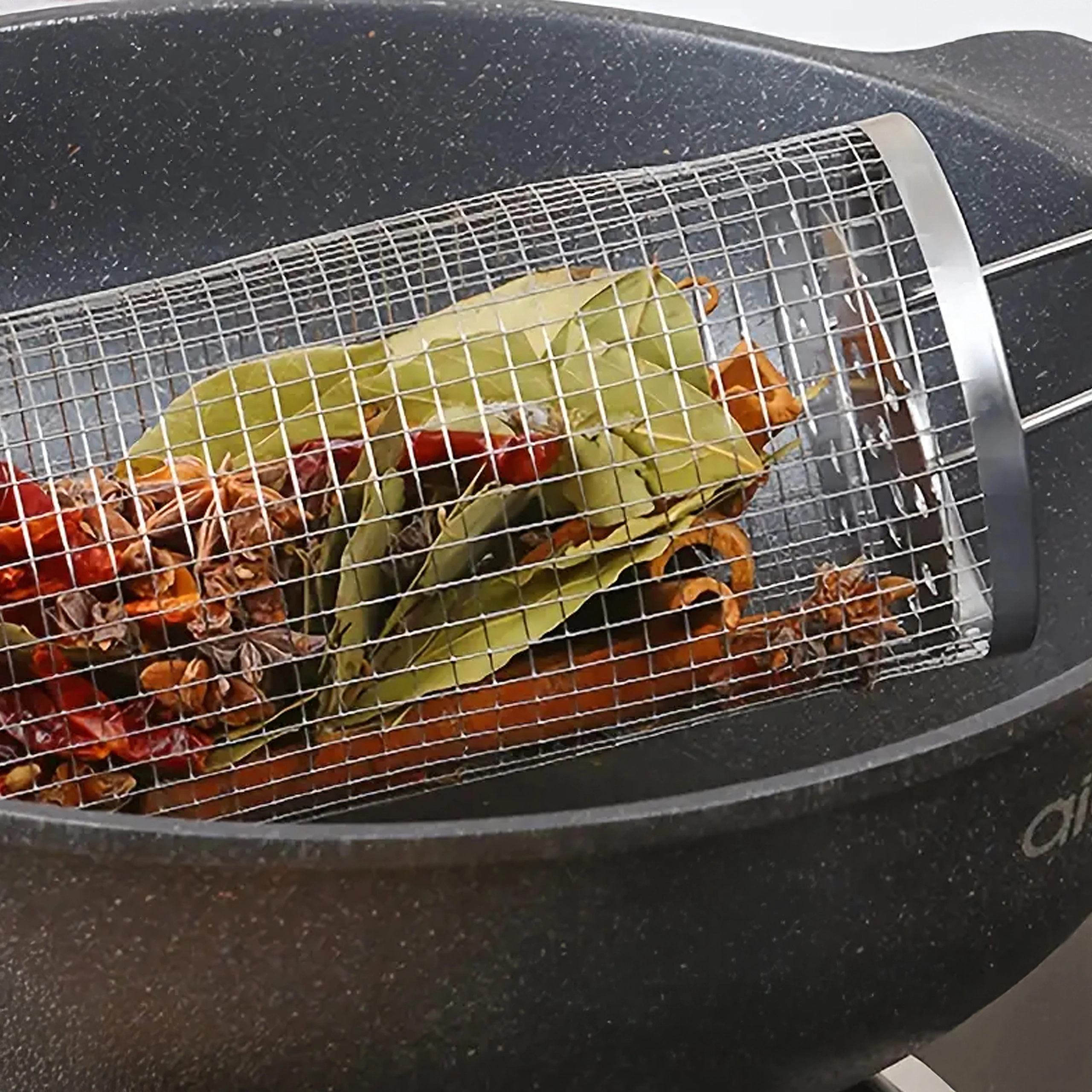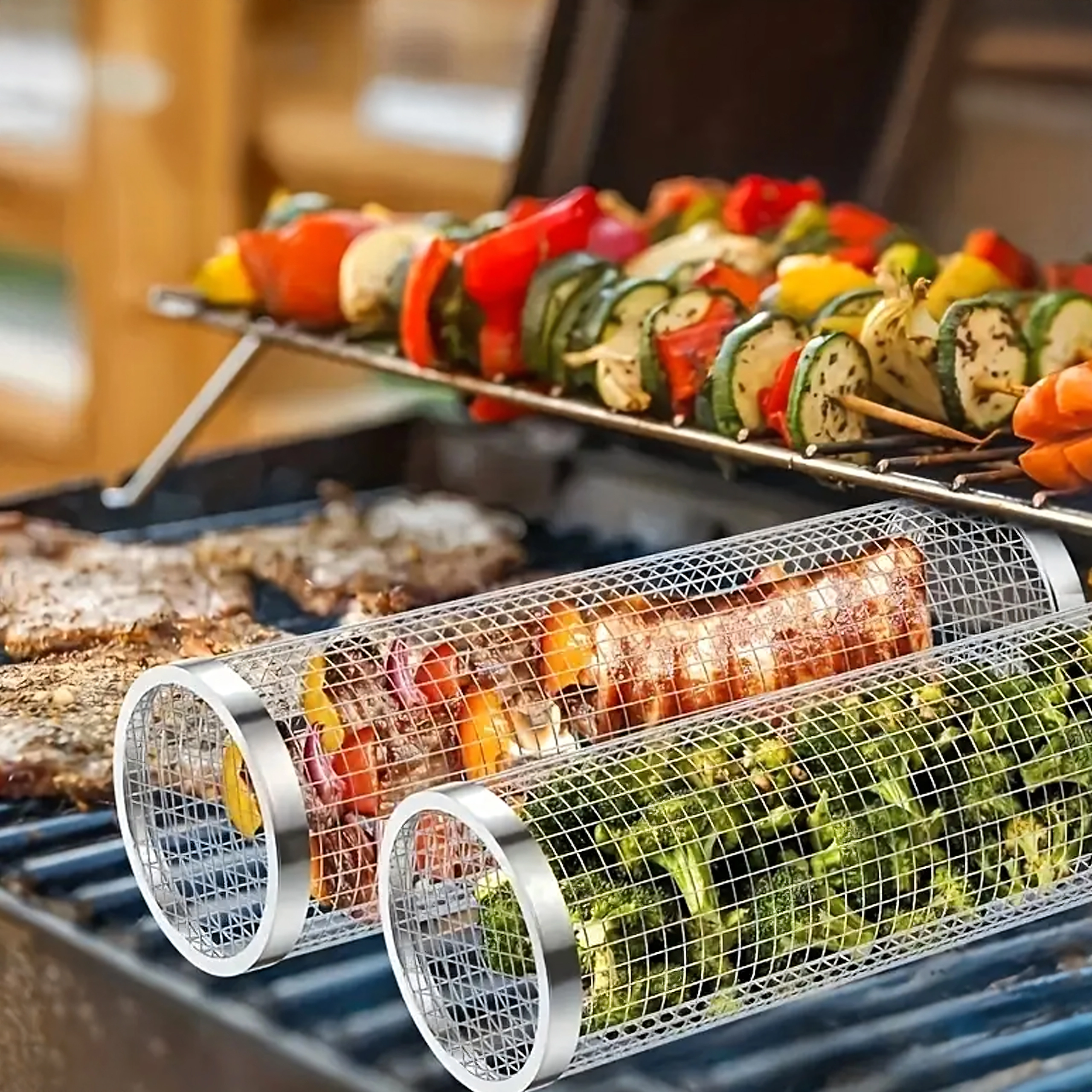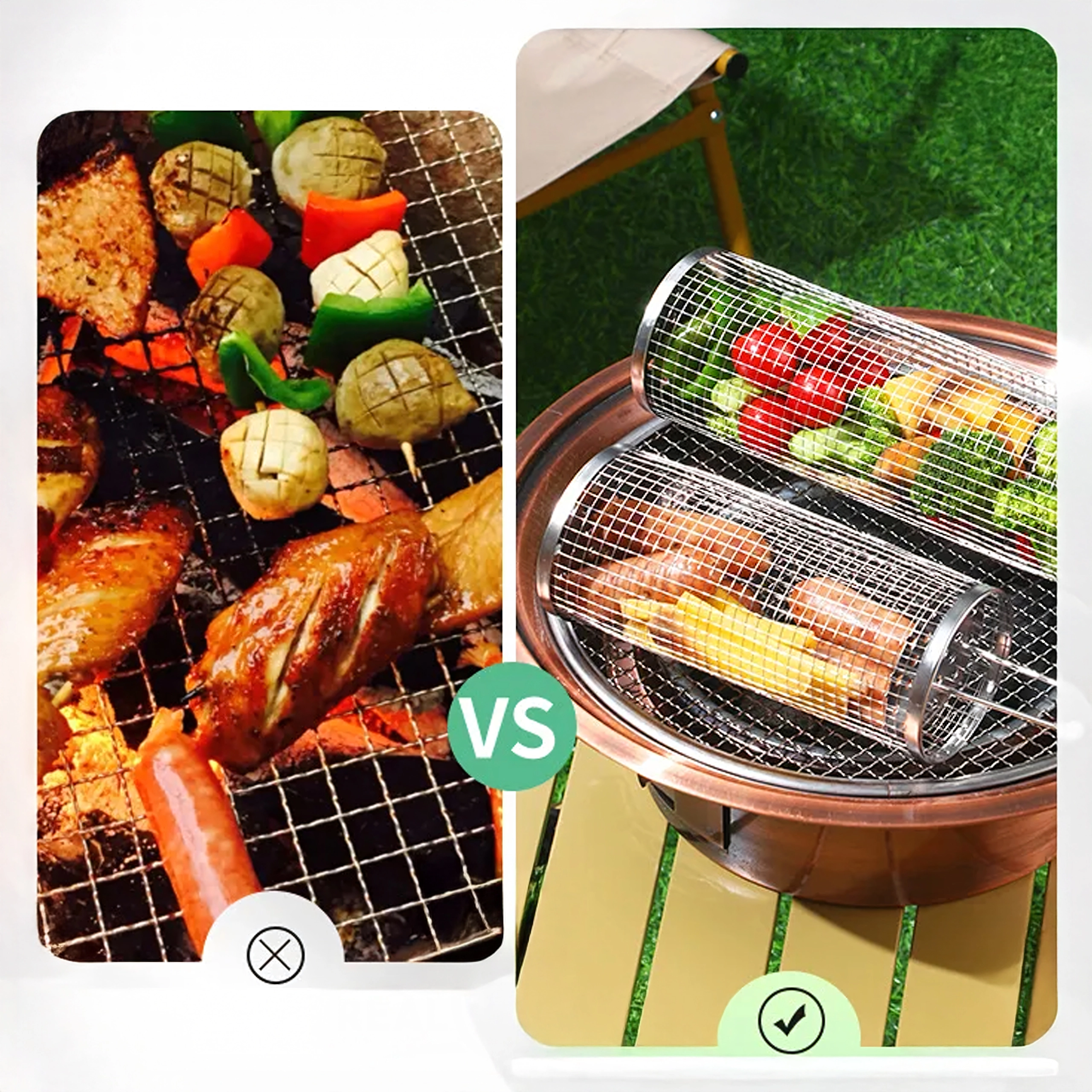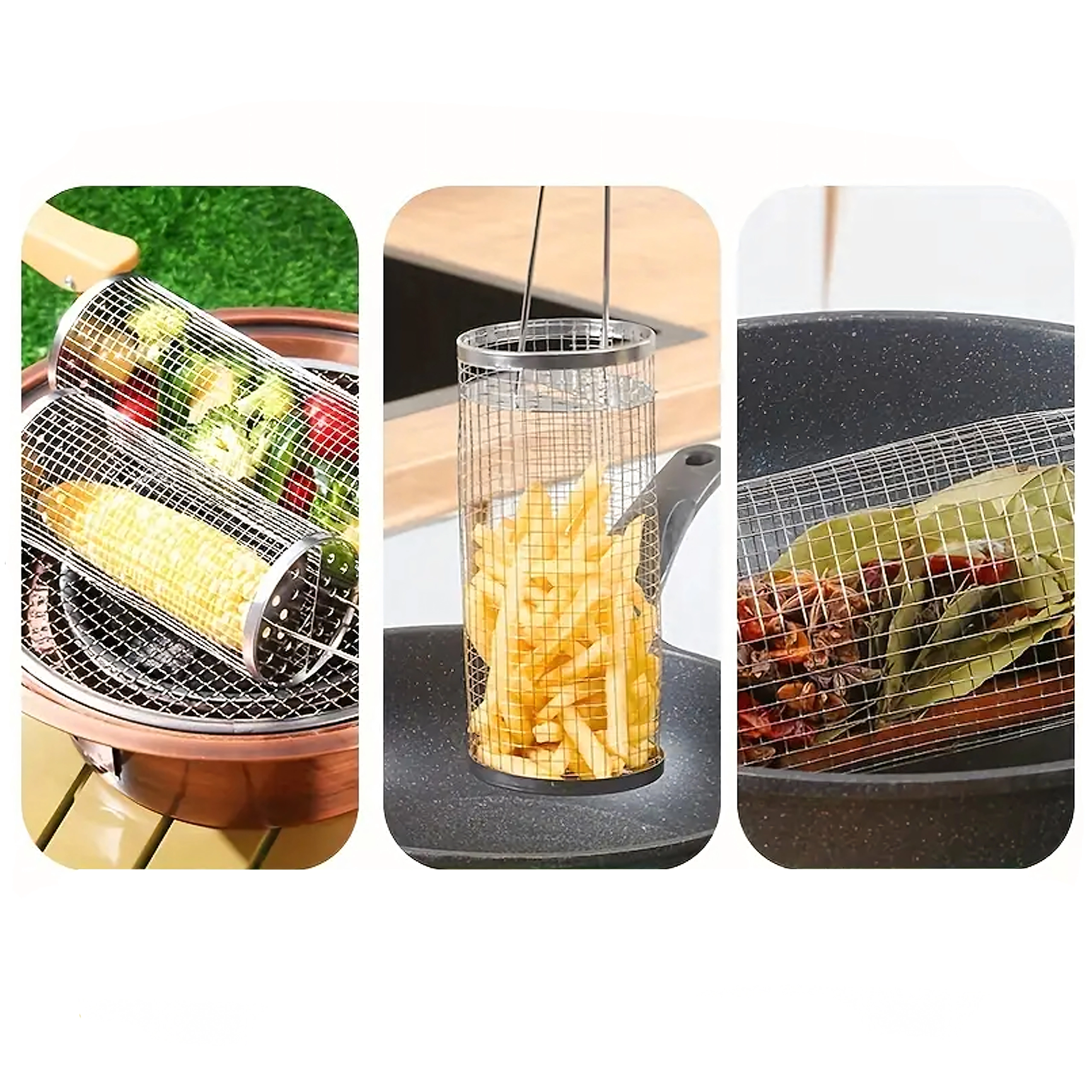 Valjasti koš iz nerjavne mrežice je idealen za peko drobnih sestavin, ki bi sicer padle skozi rešetko. Fine perforacije prepuščajo toploto in dim, zato dosežete hrustljavo skorjico in sočno sredico brez nereda na žaru. Vrtljiva zasnova olajša enakomerno zapečenost brez potrebe po obračanju posameznih kosov.