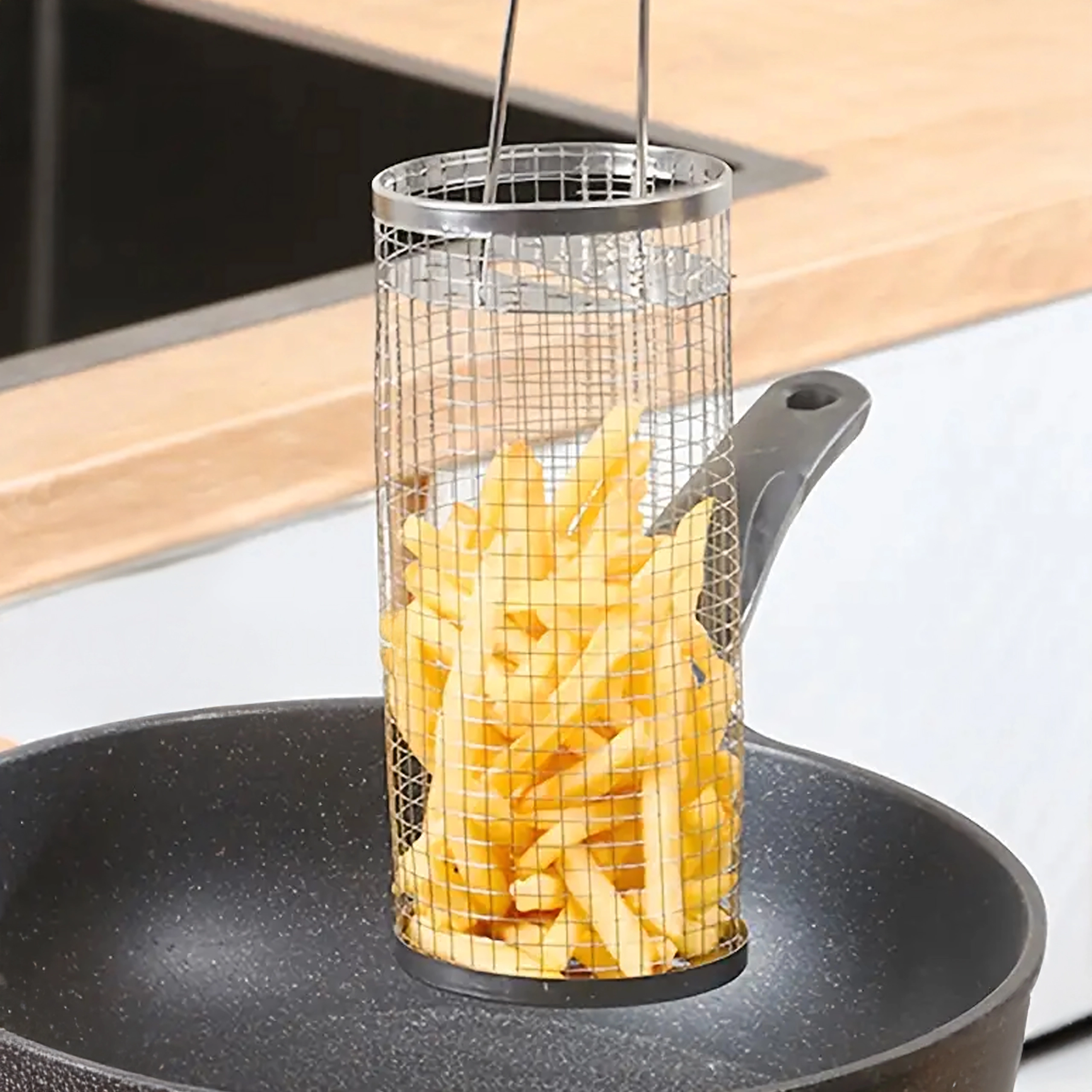 Vrtljiv nerjavni koš za žar za zelenjavo, pomfrit in ribe