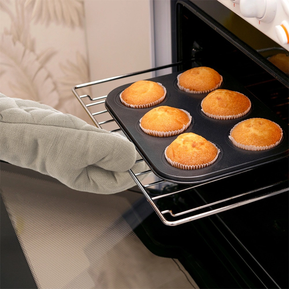 Oblazinjenje in prešita konstrukcija ščitita roko pred vročino ter zagotavljata zanesljiv prijem pekačev in loncev.