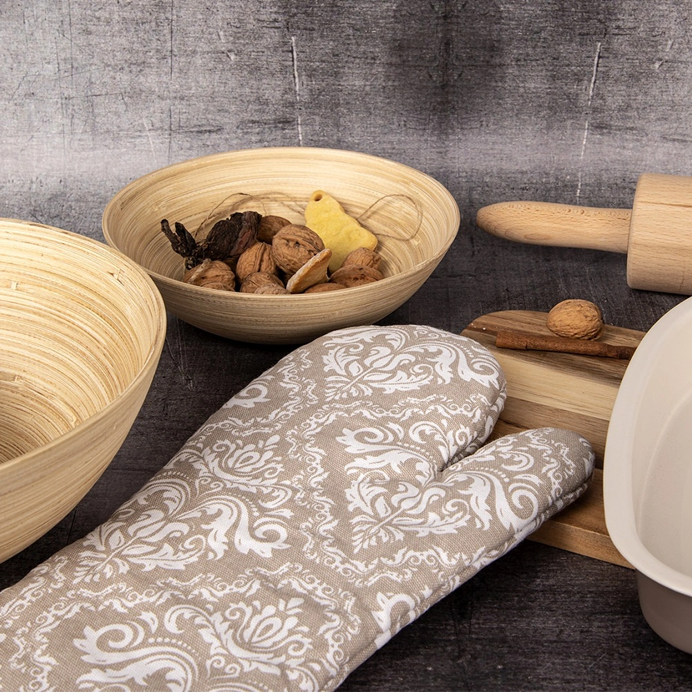Univerzalni kroj je primeren za desno in levo roko. Trpežen 100 % bombaž z dekorativnim vzorcem je enostaven za vzdrževanje, rokavica pa zaradi možnosti pranja do 30 °C ostaja dolgoročno čista in pripravljena za uporabo.