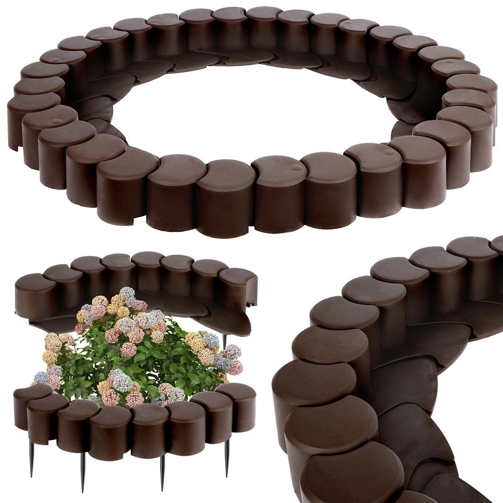Ustvarite čiste in elegantne meje okoli trat, gredic in poti. Ta rjava plastična palisada združuje privlačen videz z visoko praktičnostjo – module preprosto zaskočite skupaj, zato hitro sestavite ravne linije ali mehke krivine glede na potrebe vrta. Zahvaljujoč obstojnemu materialu ostaja barvno stabilna in funkcionalna vse leto.