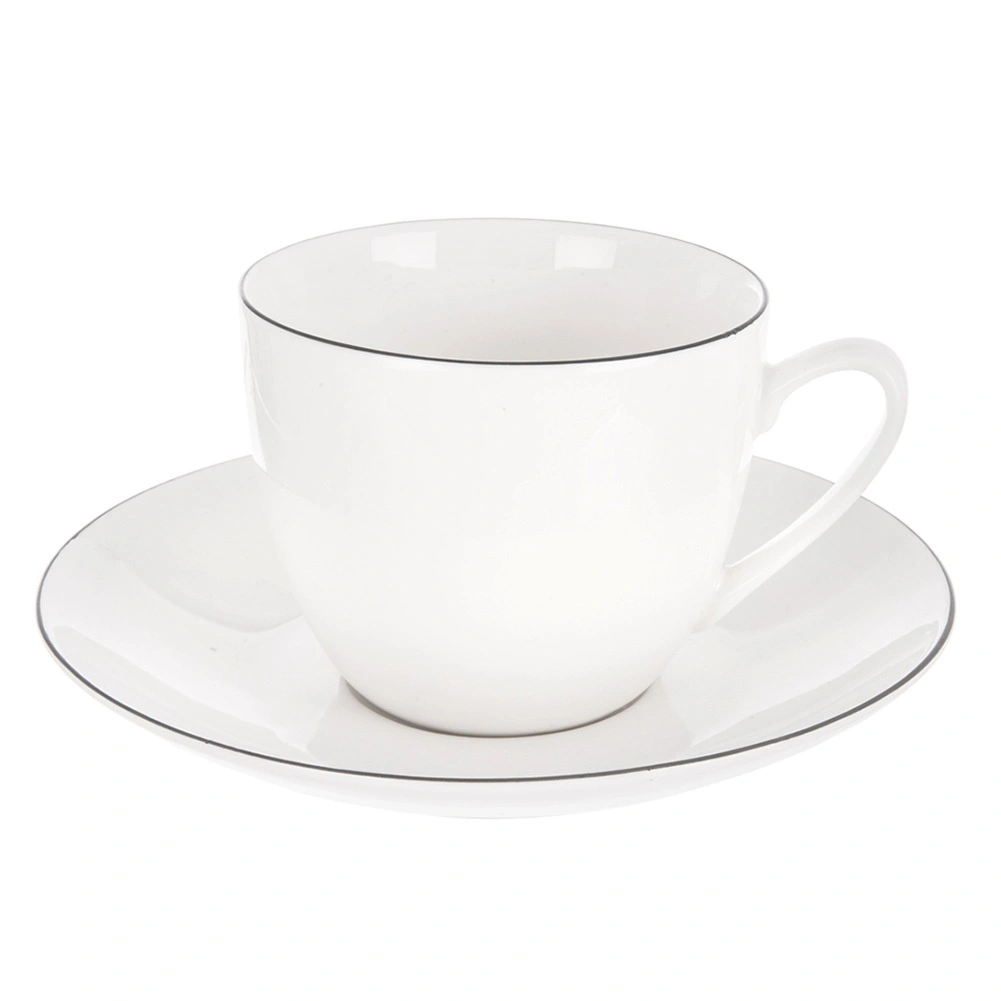 Premer 15 cm in plitko sredinsko sedlo zagotavljata stabilno postavitev skodelice. Tanka temna obroba poudari moderen in brezčasen slog.