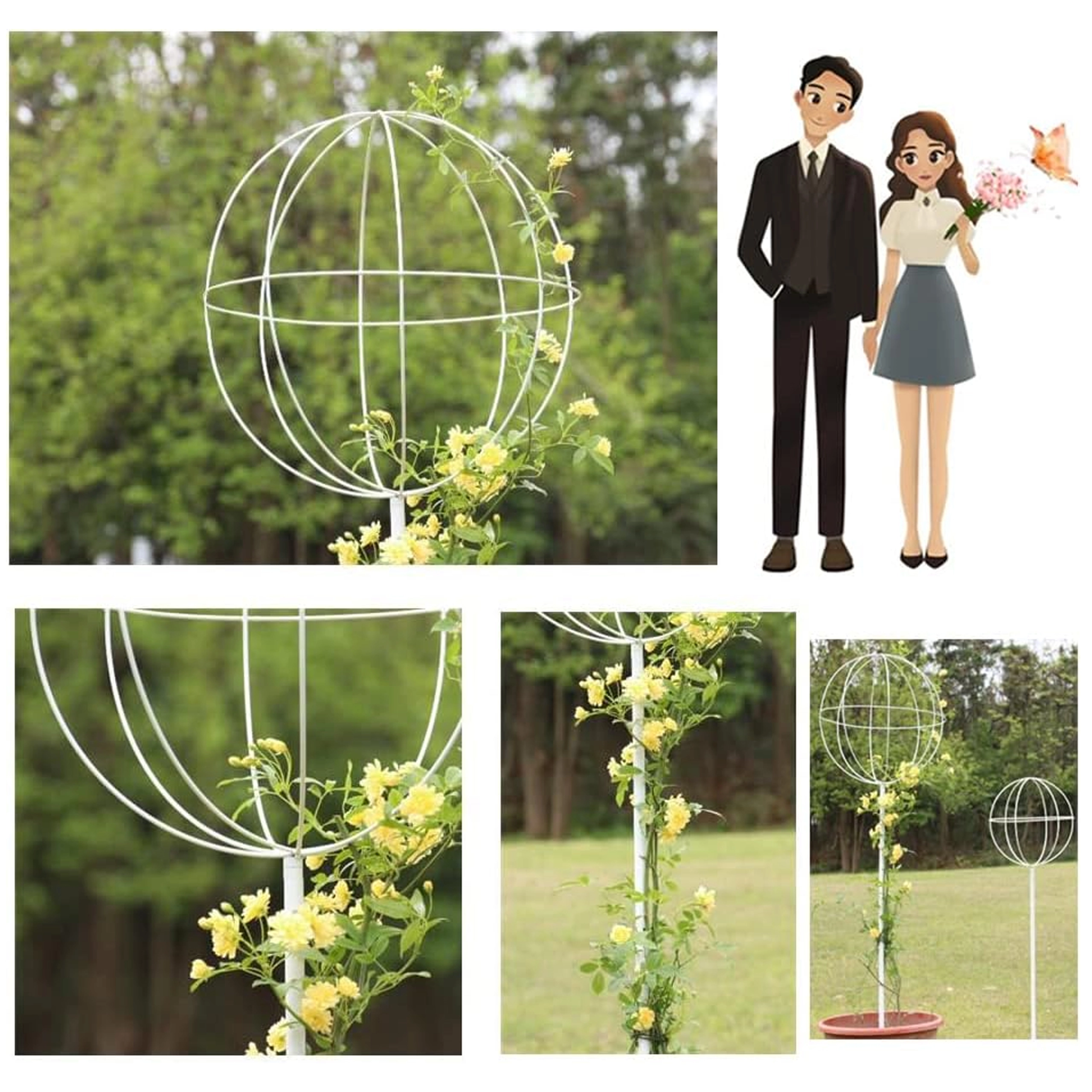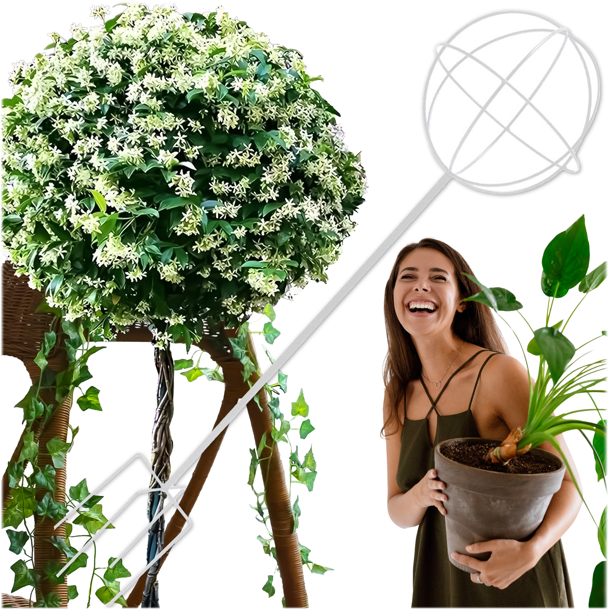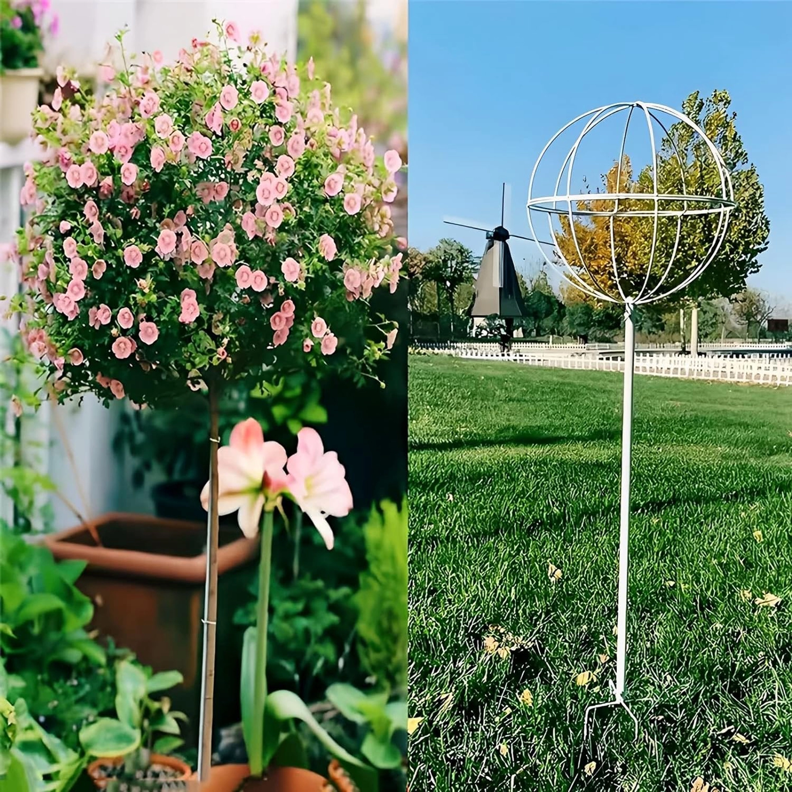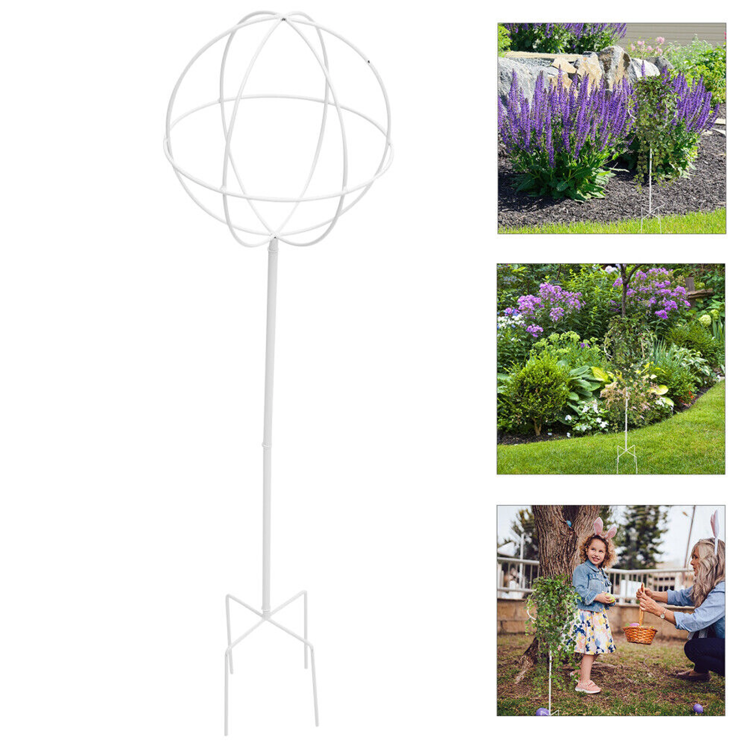 Ta oblikovno čist kovinski oporni element v obliki krogle na palici je idealen za gojenje vzpenjavk, vrtnic in cvetočih lian. Zaradi belega zaključka izstopa med zelenjem in cvetovi, hkrati pa ne moti naravnega videza zasaditve. Enostavno se zapiči v tla in takoj nudi rastlinam oporo pri rasti.