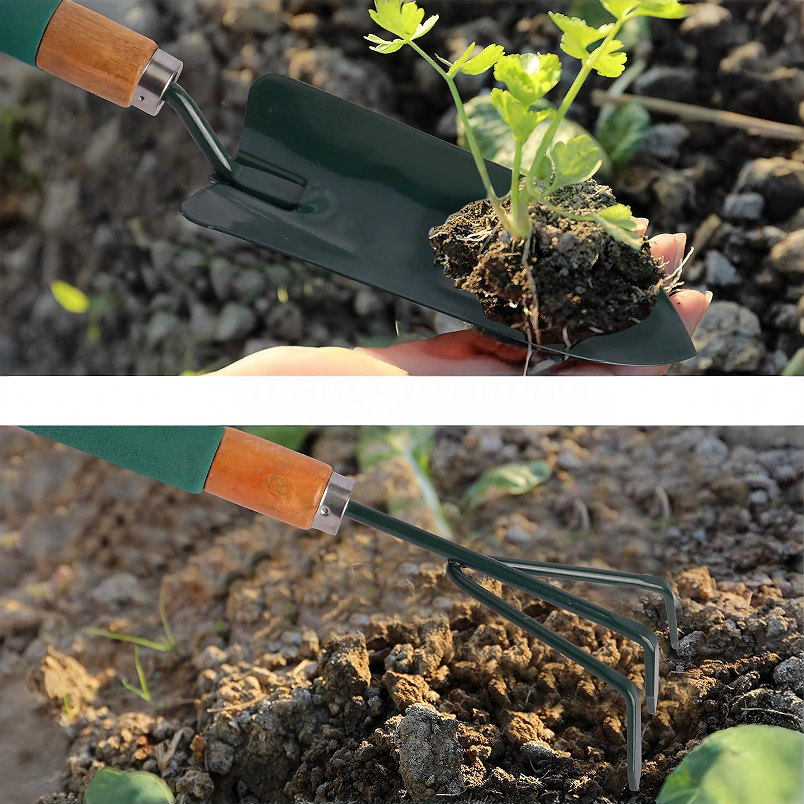 Vzdržne glave orodij prenesejo vsakodnevno uporabo – od rahljanja in kopanja do sajenja sadik in odstranjevanja plevela.