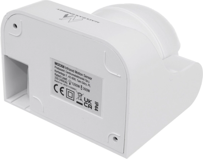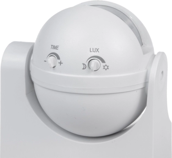 Avtomatizirajte osvetlitev in varčujte z energijo s pametnim senzorjem MACLEAN MCE358. Zaradi IP44 je primeren za zunanjo in notranjo uporabo, vklaplja glede na gibanje in raven svetlobe. Enostavno nastavite čas vklopa (pribl. 10 s – 7 min) in prag svetlosti (3–20000 LUX) z vrtljivima elementoma TIME in LUX.