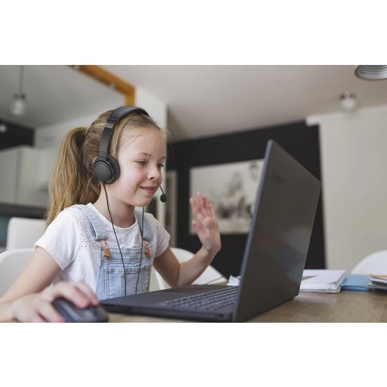 Vgrajen upravljalnik na trpežnem 2‑m opletenem kablu omogoča hitro utišanje in uravnavanje glasnosti. Vrtljiv mikrofon v obsegu 270° lahko nosite levo ali desno. 40‑mm stereo zvočniki prinašajo uravnotežen zvok, medtem ko varen omejevalnik glasnosti (EN 50332‑2) ščiti sluh pri dolgotrajni uporabi.