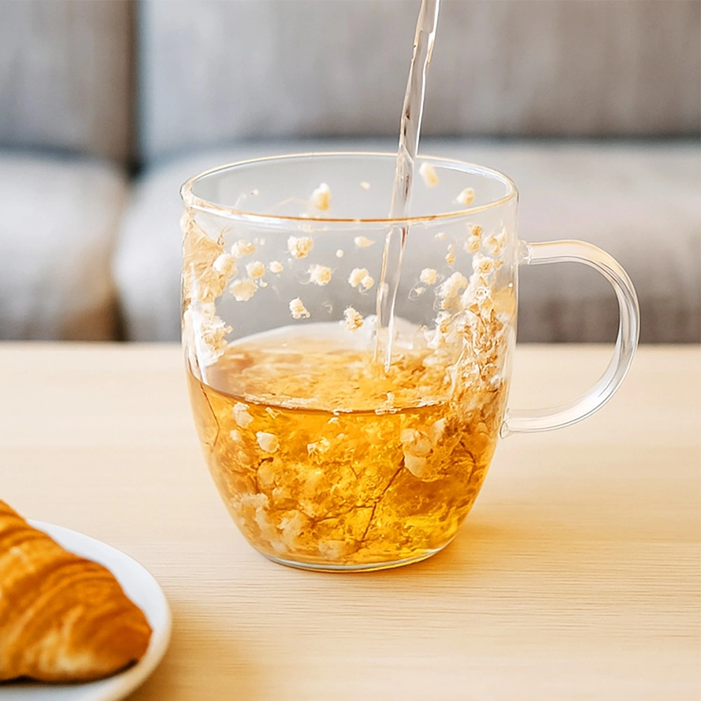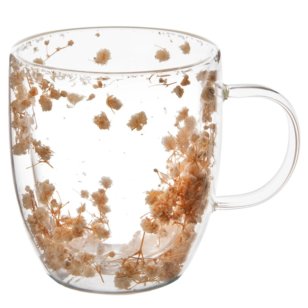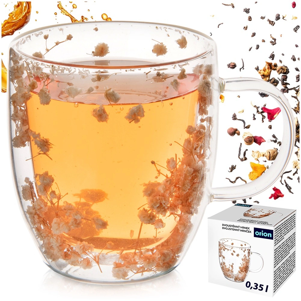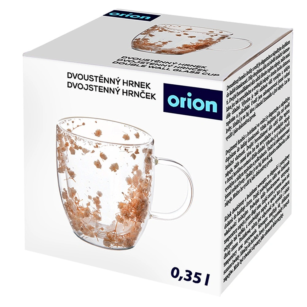 Eleganten stekleni lonček z dvojno steno ohranja vaše napitke dlje tople ali hladne. Izdelan iz borosilikatnega stekla, je odporen na temperature od -10 °C do +150 °C, na praske in kemikalije. Udobno uho in izviren dekor posušenih cvetov med stenama dodata vsakemu požirku stil.