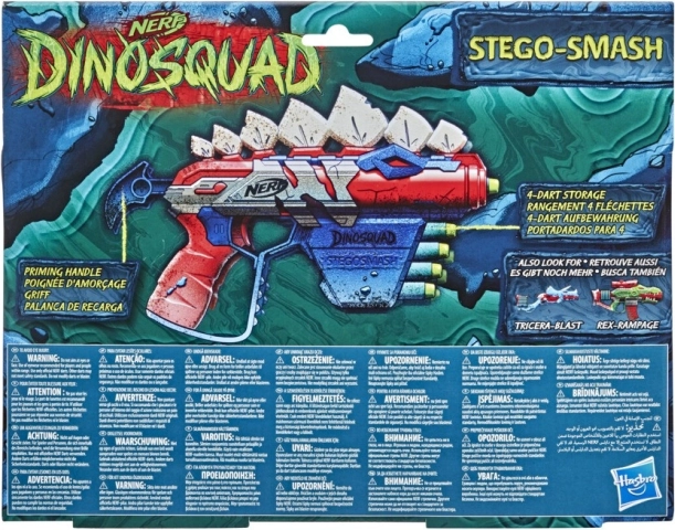 Potopite se v svet prazgodovine in izkoristite moč Stego-Smash Blasterja podjetja Hasbro, ki slovi po kakovosti in inovacijah na področju igrač. Ta osupljivi blaster z izrazitim dinozavrsko navdihnjenim dizajnom meri 24 x 30 x 5 cm, zato je kompakten in enostaven za upravljanje z mladimi rokami.