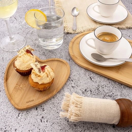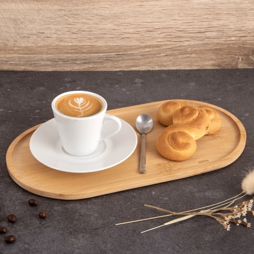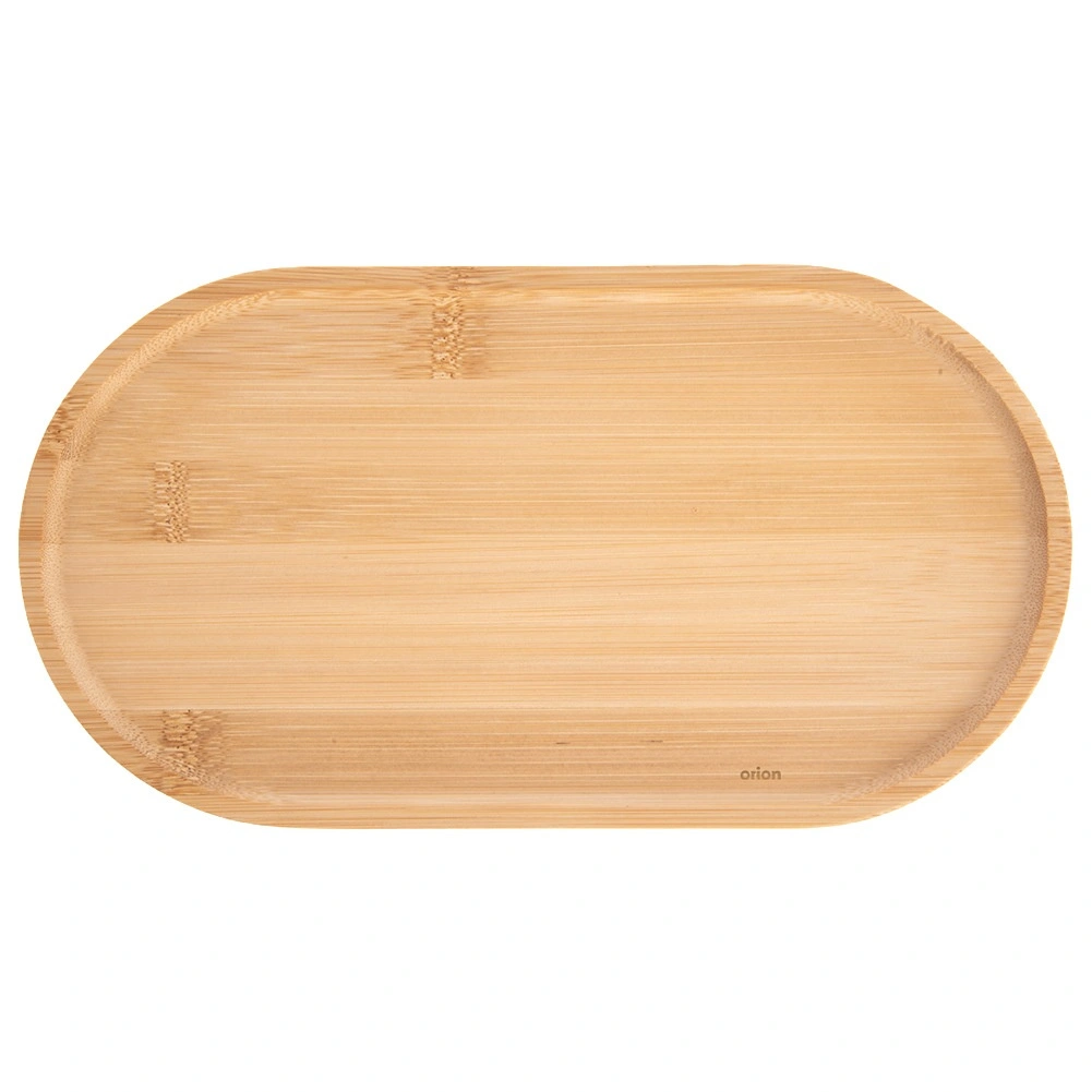 Odkrijte minimalističen, a izrazit bambusov servirni krožnik ovalne oblike z merami 28 × 15 × 1 cm. Idealen je za serviranje sladic, obloženih kruhkov, sirov, sadja in prigrizkov, pa tudi za odlaganje skodelic in vrčkov. Zaradi gladke površine in zvišanega roba odlično služi tudi kot dekorativni pladenj za sveče ali sezonske aranžmaje.