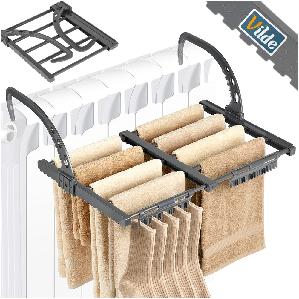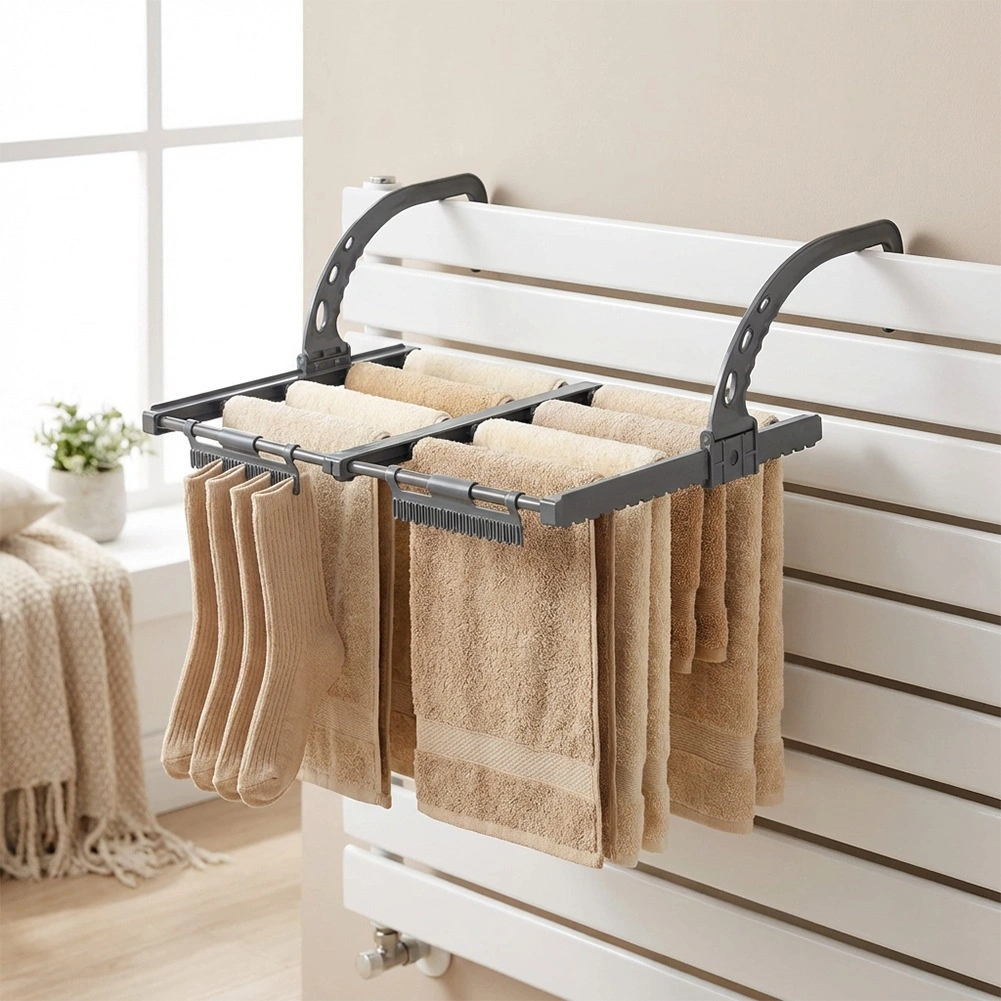 Vsestranska uporaba: na radiatorju v kopalnici ali sobi, pa tudi na ograji balkona ali terase. Zložen zavzame minimalno prostora – odlično rešitev za majhna gospodinjstva in za na pot.