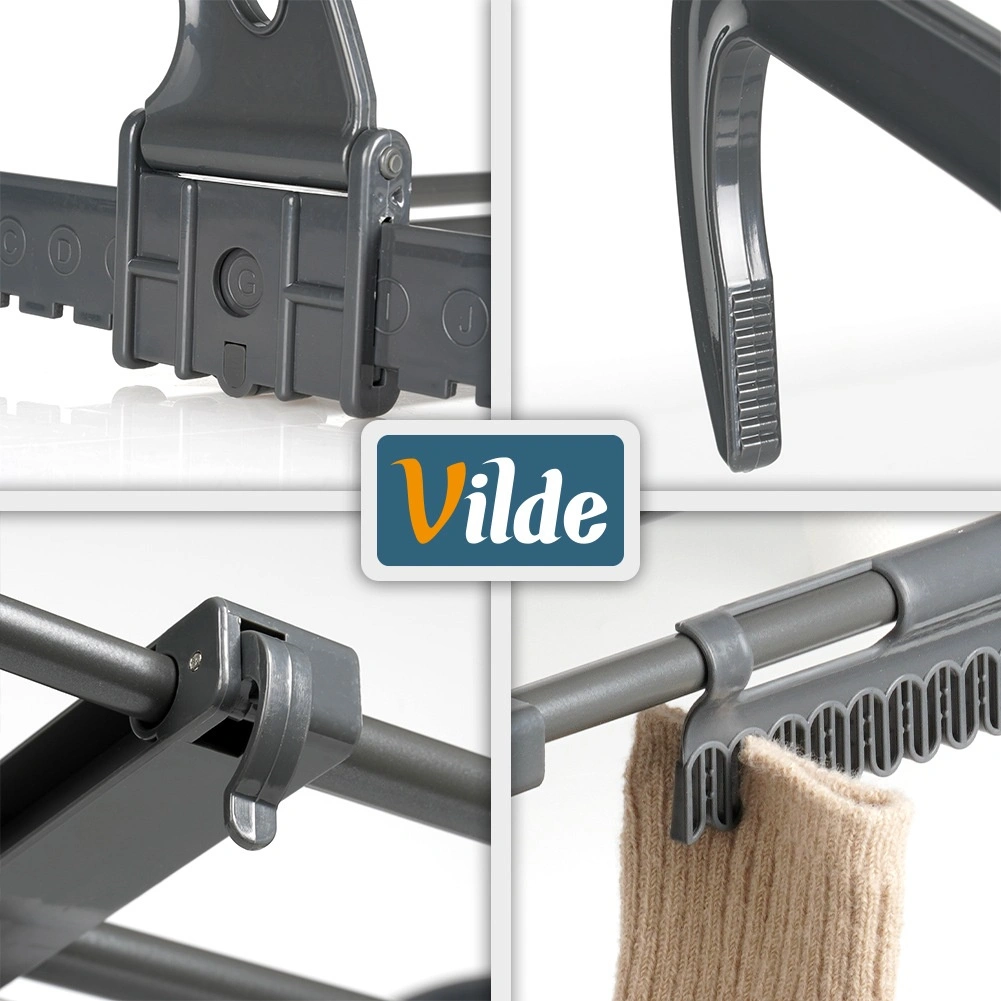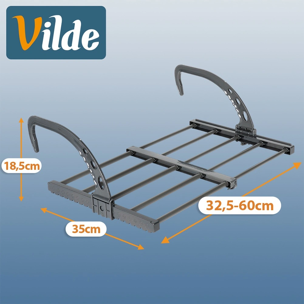 Zahvaljujoč izvlečni konstrukciji 32,5–60 cm prilagodite prostor trenutni količini perila. Skupno 10 palic (dolžine 26 in 28 cm) nudi približno 270 cm sušilne površine – idealno za spodnje perilo, otroška oblačila, majice ali brisače. Dva praktična držala za manjše kose olajšata sušenje nogavic ali spodnjega perila.