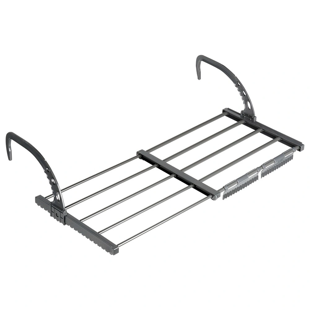 Zahvaljujoč zložljivim, višinsko nastavljivim kavljem ga zlahka obesite na radiator širine do 13 cm, pa tudi na balkonsko ali terasno ograjo. Dva priložena nosilca olajšata sušenje manjšega perila in nogavic. Po zlaganju zavzame minimalno prostora, zato je odličen tudi za potovanja.