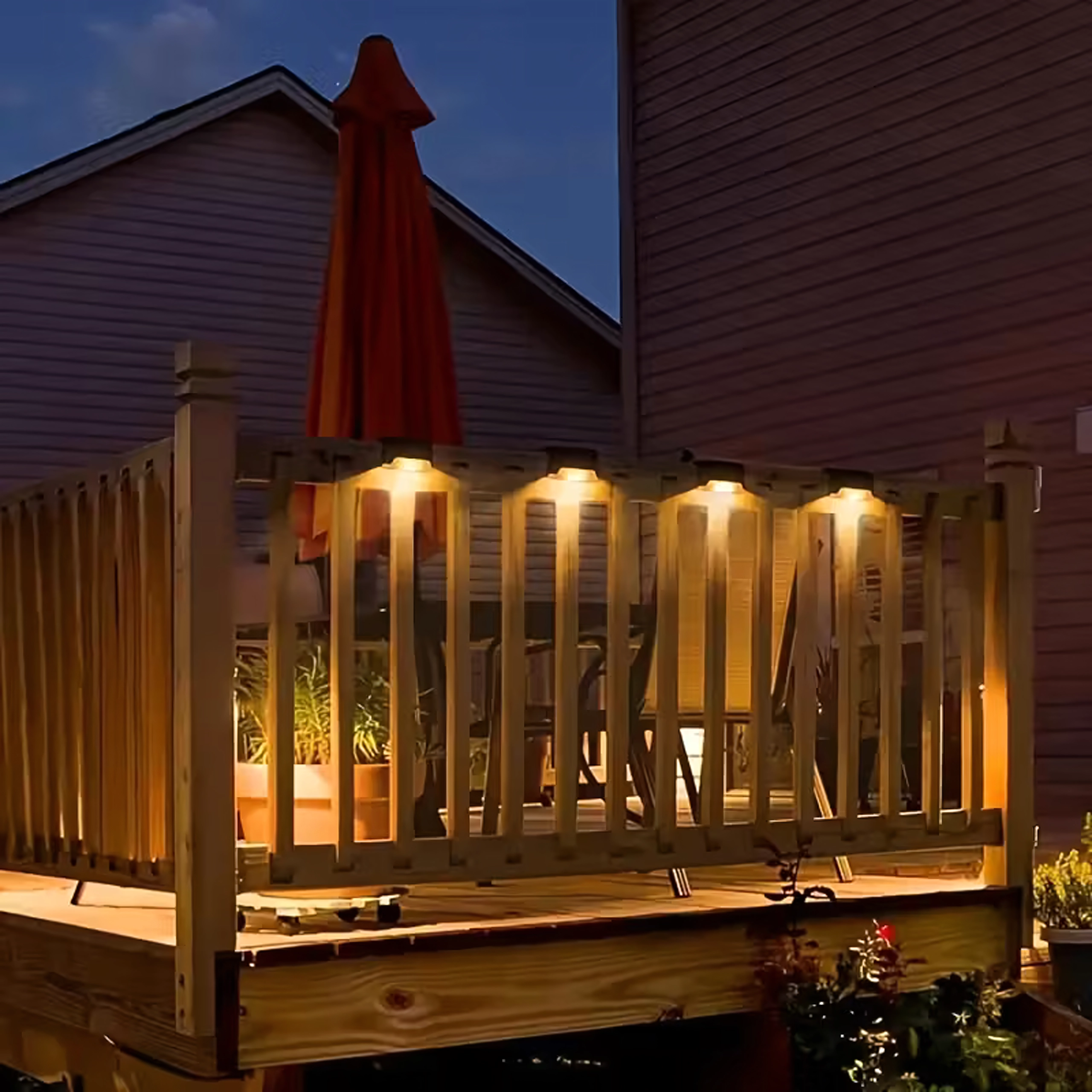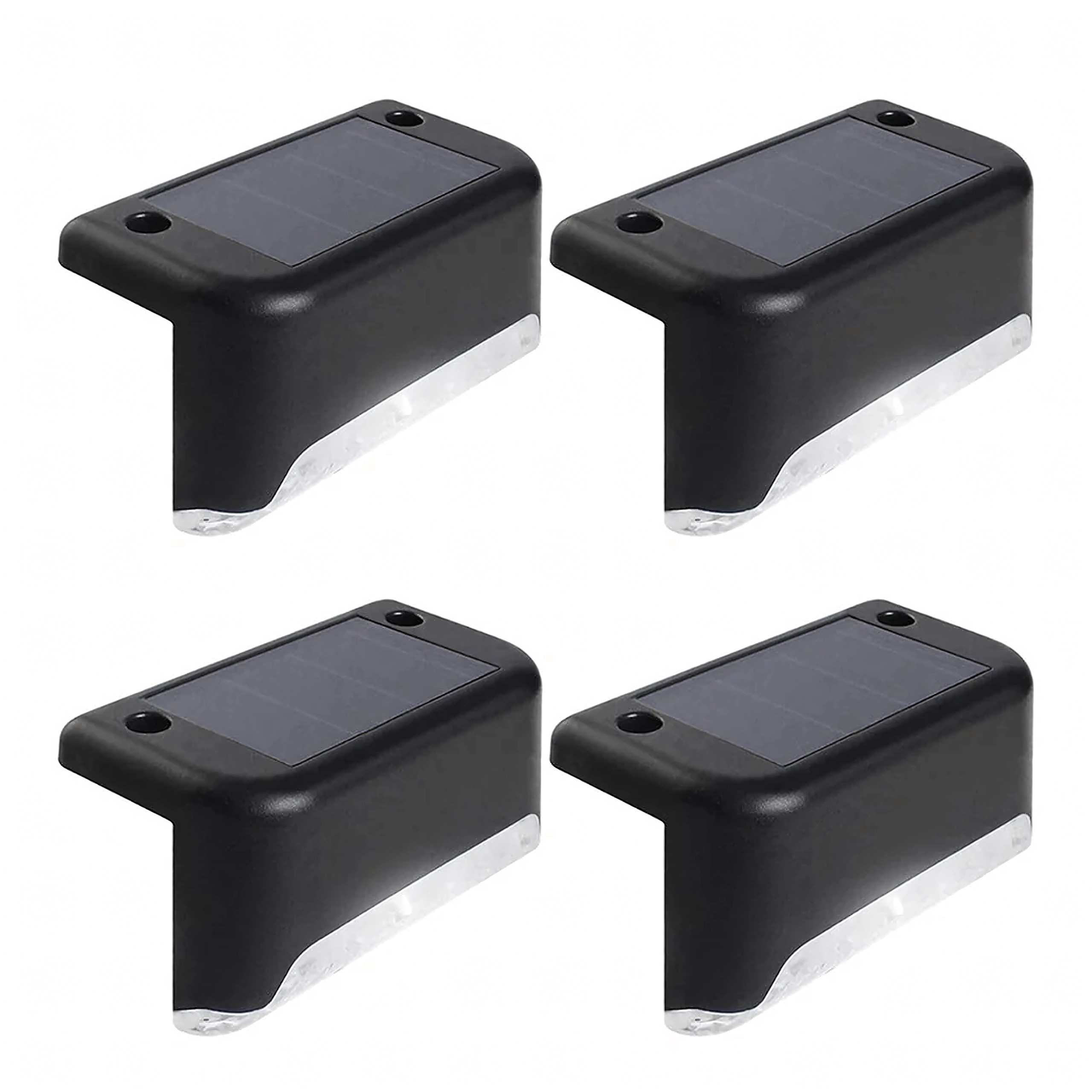 Praktičen komplet 4 zunanjih solarnih luči za varno osvetlitev stopnic, teras in ograj. Samodejni vklop ob mraku, varčne LED, topla prijetna svetloba in vodoodporna zasnova za celoletno delovanje brez kablov.