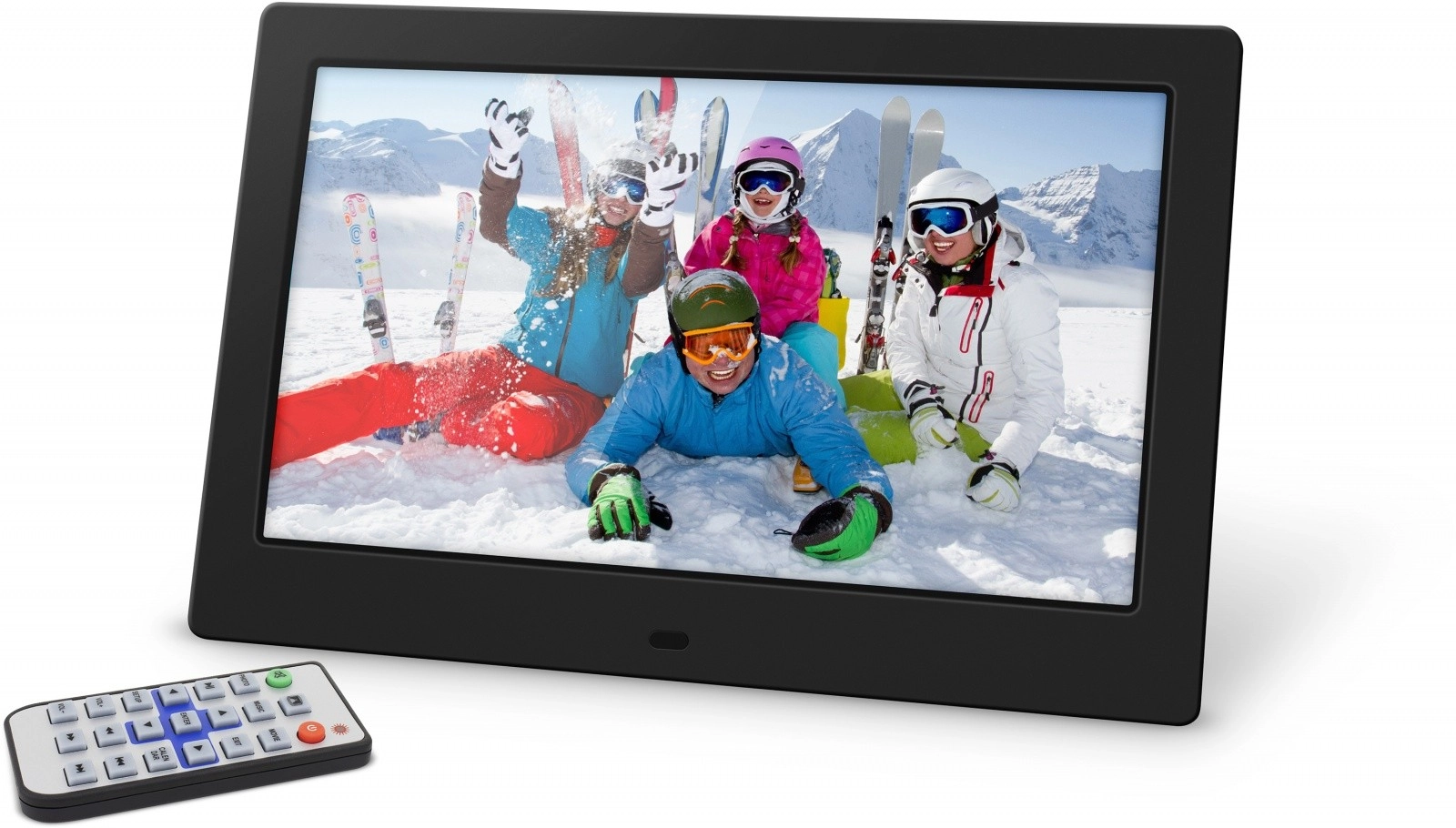 Eleganten digitalni fotoramek z 10,1" IPS zaslonom prikaže vaše fotografije v živih barvah in z ostrimi detajli. Zahvaljujoč ločljivosti 1366 × 768 in širokim kotom gledanja je slika odlična z vsake strani. Preprosto predvajajte fotografije (JPEG, BMP), videe (MKV, MOV, AVI, MP4) in glasbo (MP3, WMA) – posamično ali v samodejnem načinu.