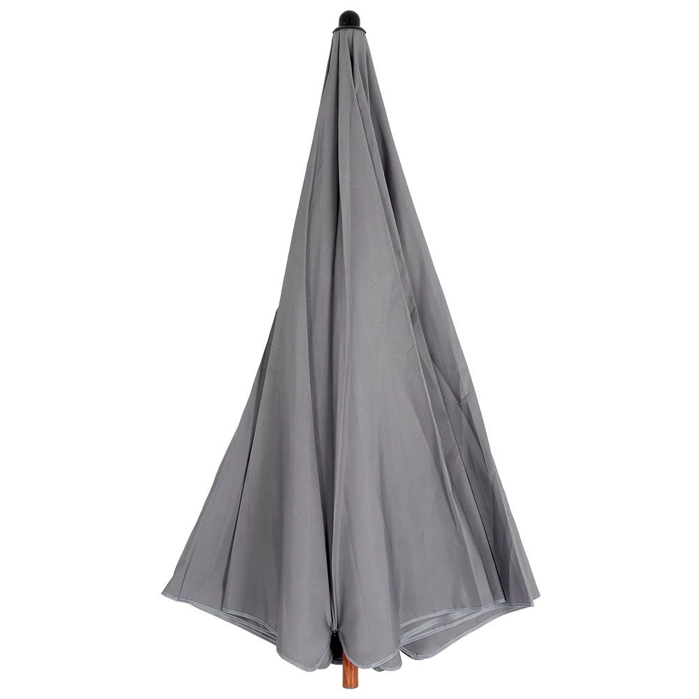 Sodoben vrtni senčnik s premerom 200 cm z stabilno kovinsko konstrukcijo v videzu lesa in sivo poliestersko streho. Nudi zanesljivo zaščito pred soncem, ima nastavljivo višino in ga zaradi praktičnega transportnega etuija zlahka vzamete na vrt, teraso ali plažo.